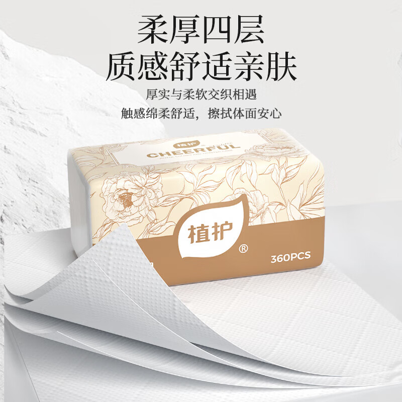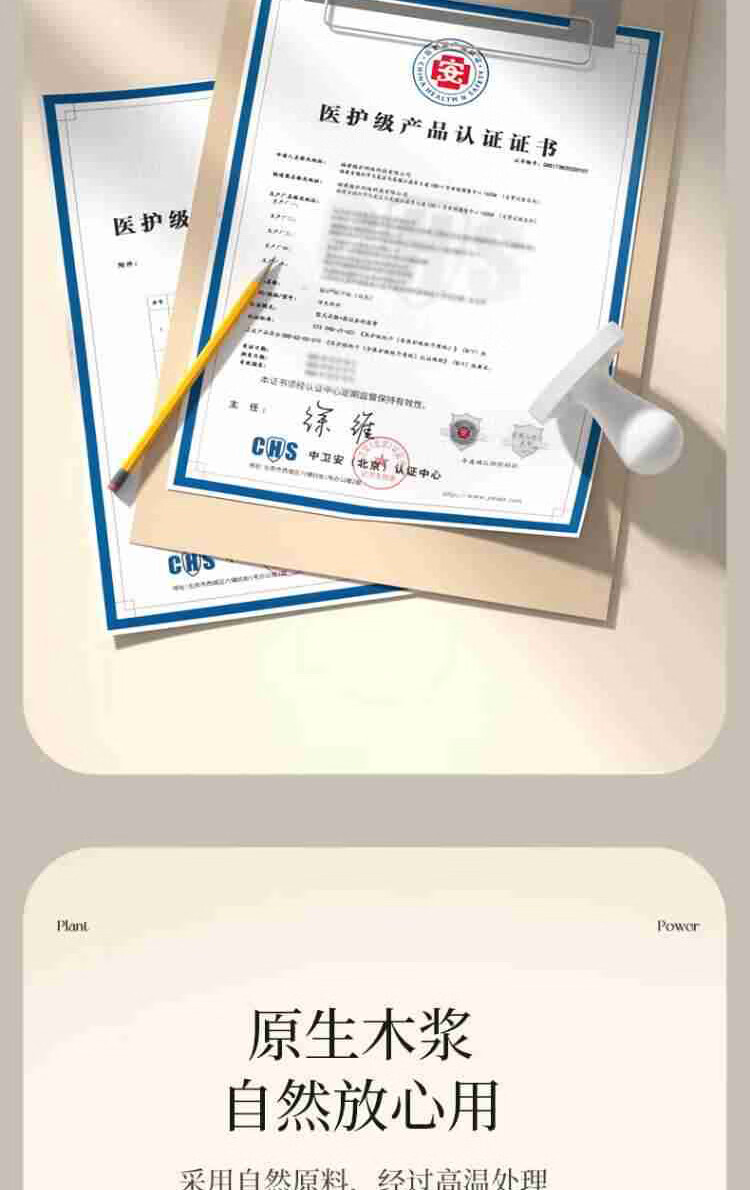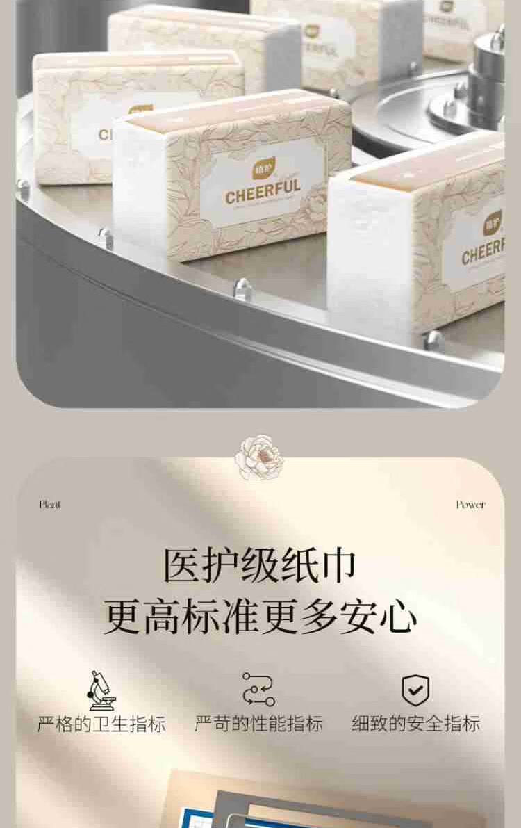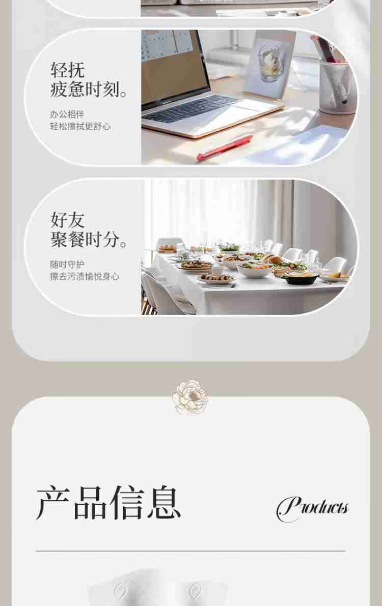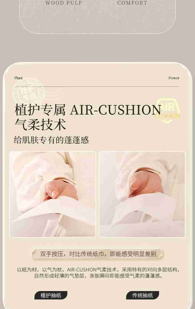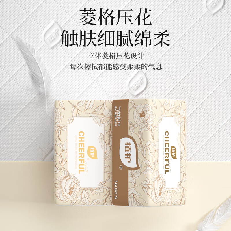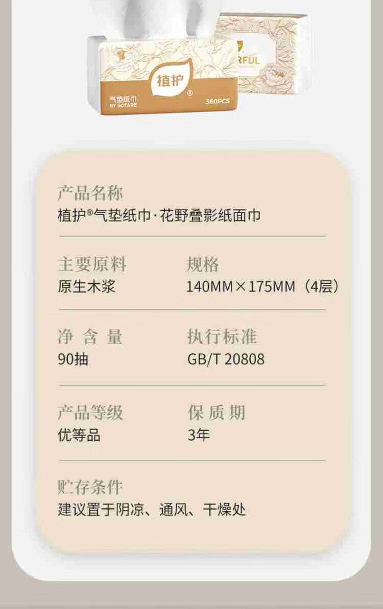 原生木浆 进口品质;轻盈压花 臻享品质;柔软触感 亲如肌肤;加大设计 一张抵两张