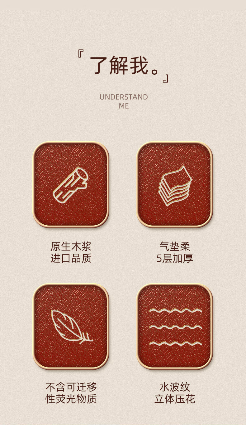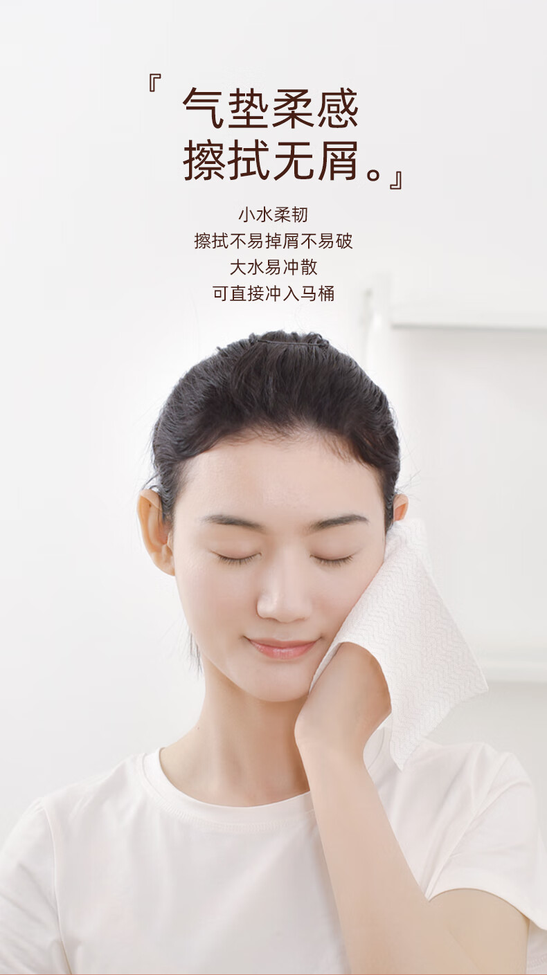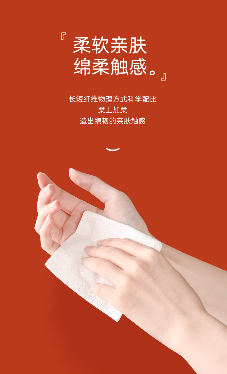 精选原生木浆,柔韧性更好;纸质绵柔细腻,擦拭不留屑,亲肤零刺激;湿水性好,强韧吸附水渍不易破