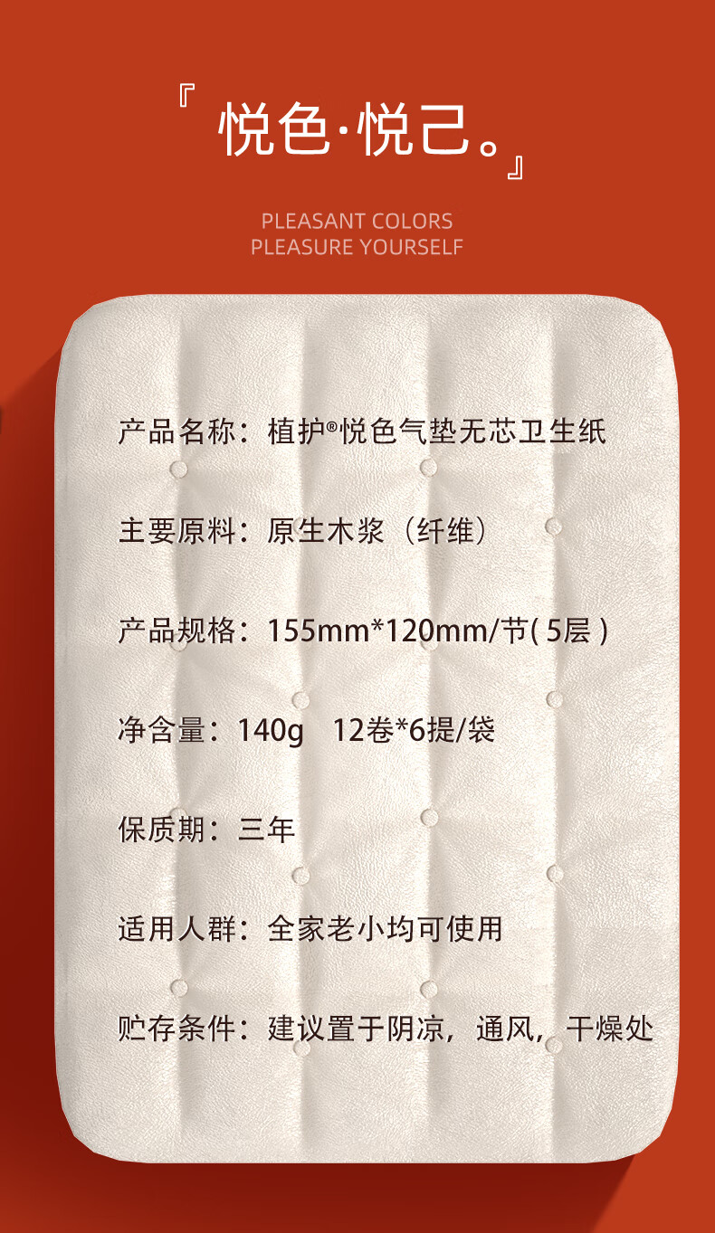 植护 悦色橙无芯卷纸140g*12卷ZH305430