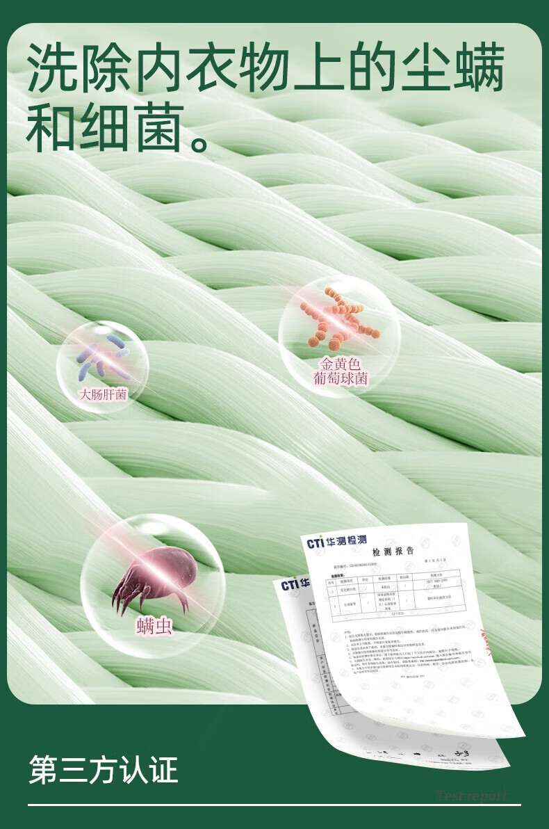 除菌除螨,去渍柔护,低泡易漂,省心洁净;无磷配方,全家适用,添加活性因子,洁净出彩;99.9%抑菌除尘螨,温和亲肤,根源处去异味;添加蛋白酶成分,瓦解顽固污渍及经期血渍等,还原衣物