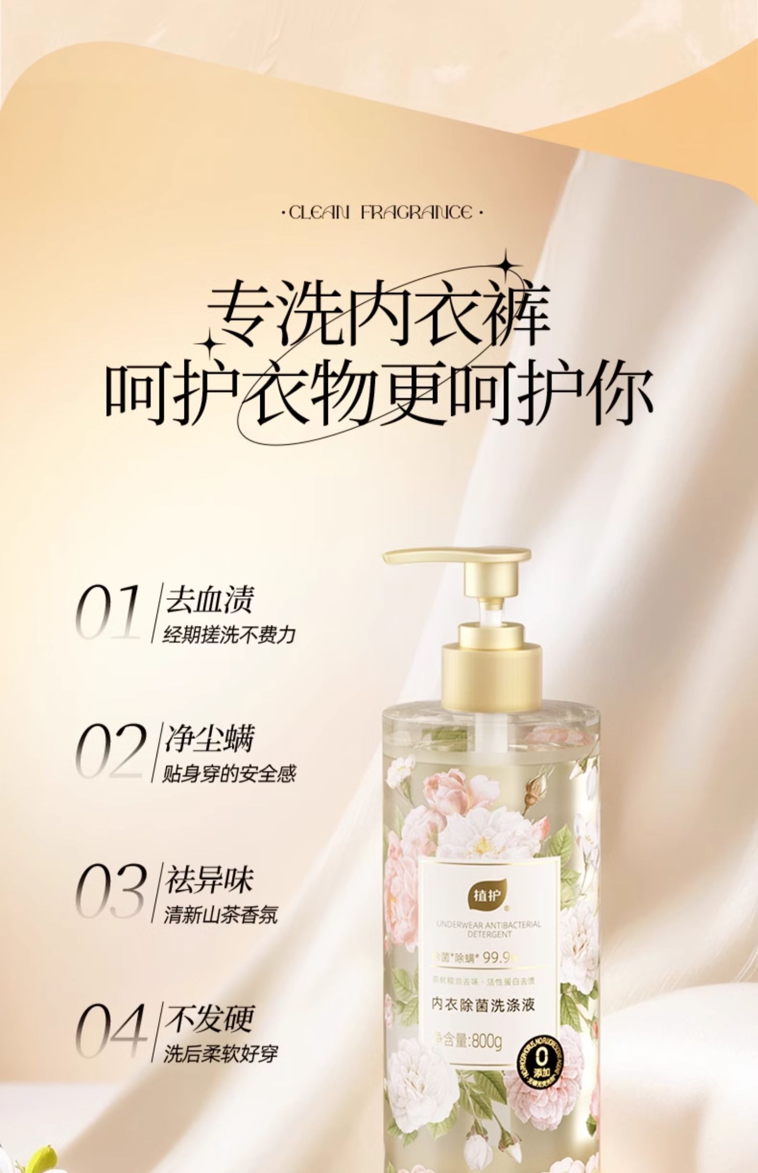 除菌除螨,去渍柔护,低泡易漂,省心洁净;添加蛋白酶成分,瓦解顽固污渍及经期血渍等,还原衣物;添加表面活性剂和污渍乳化剂,去污能力强
