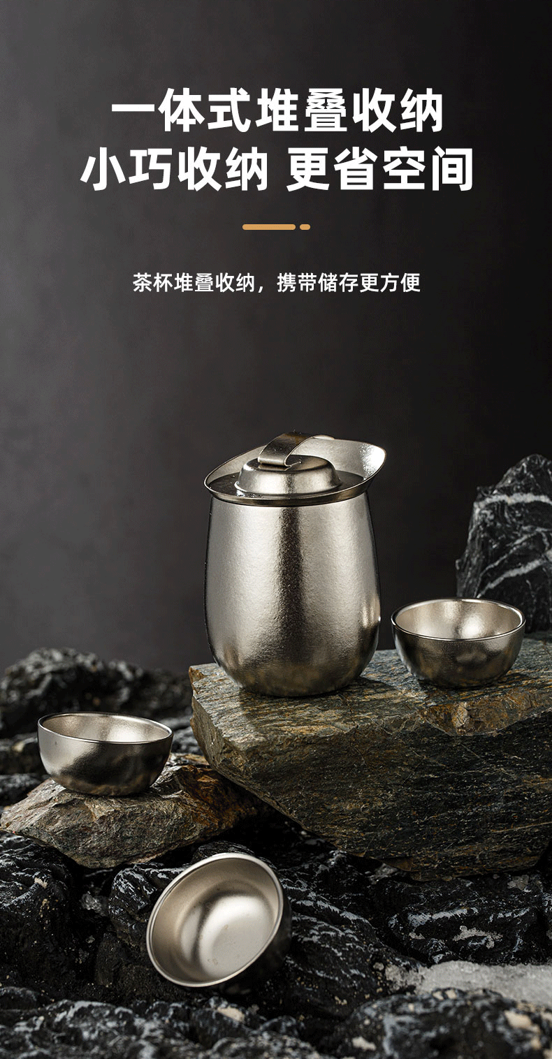 高品质钛茶具钛纯度高达99.8%;高档皮质收纳小空间大收纳;钛材质更加耐用安全,硬度高更不易变形