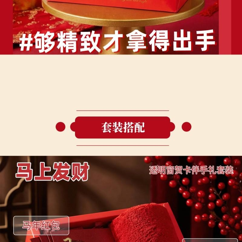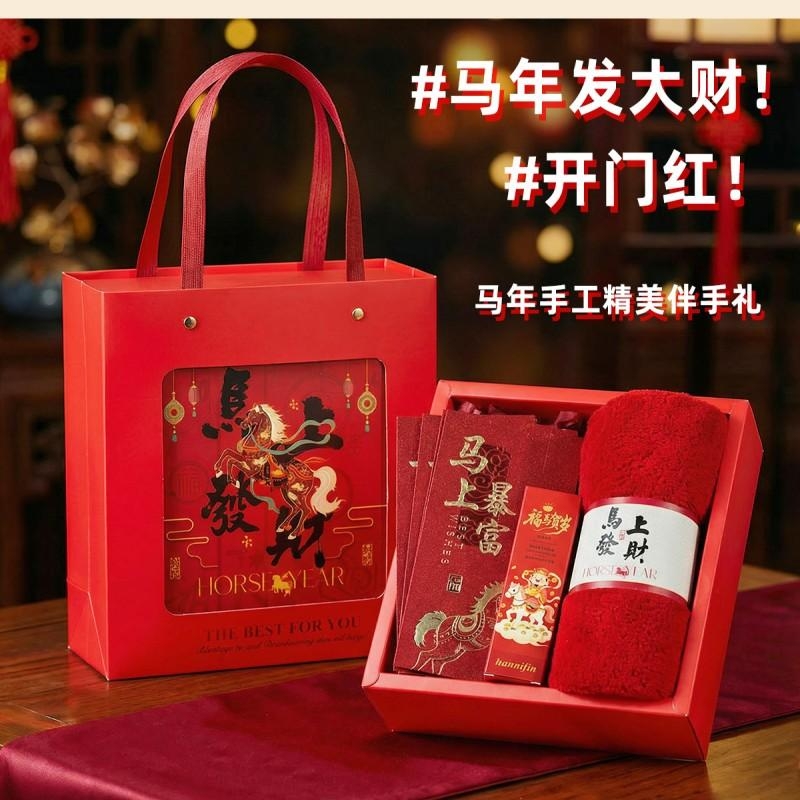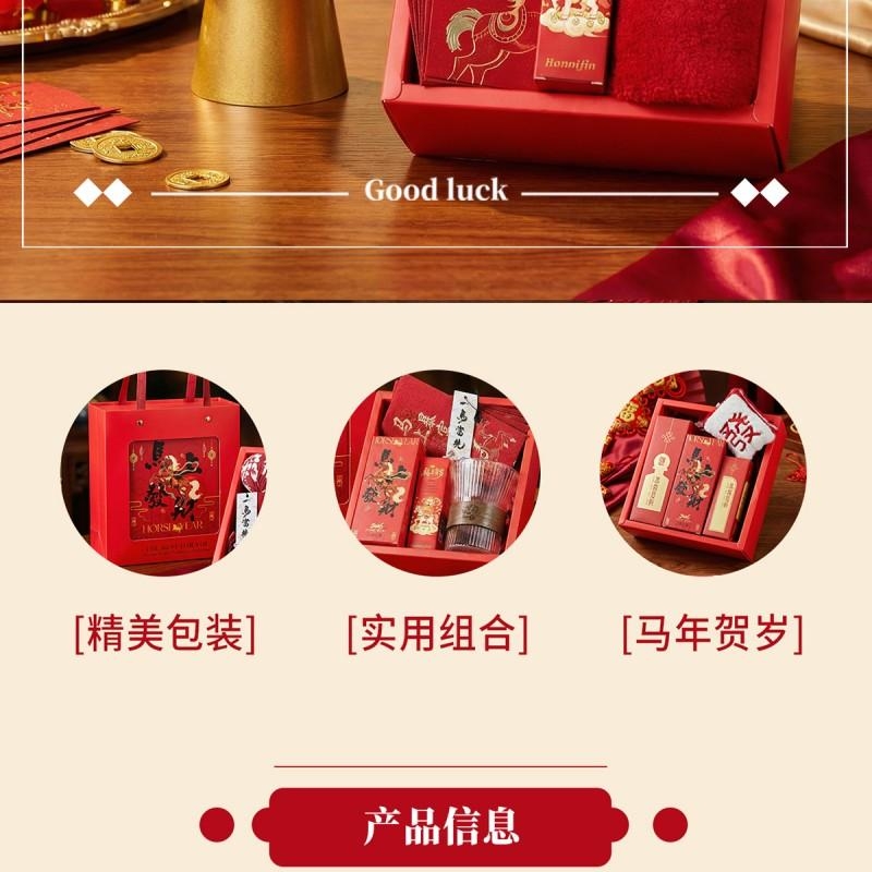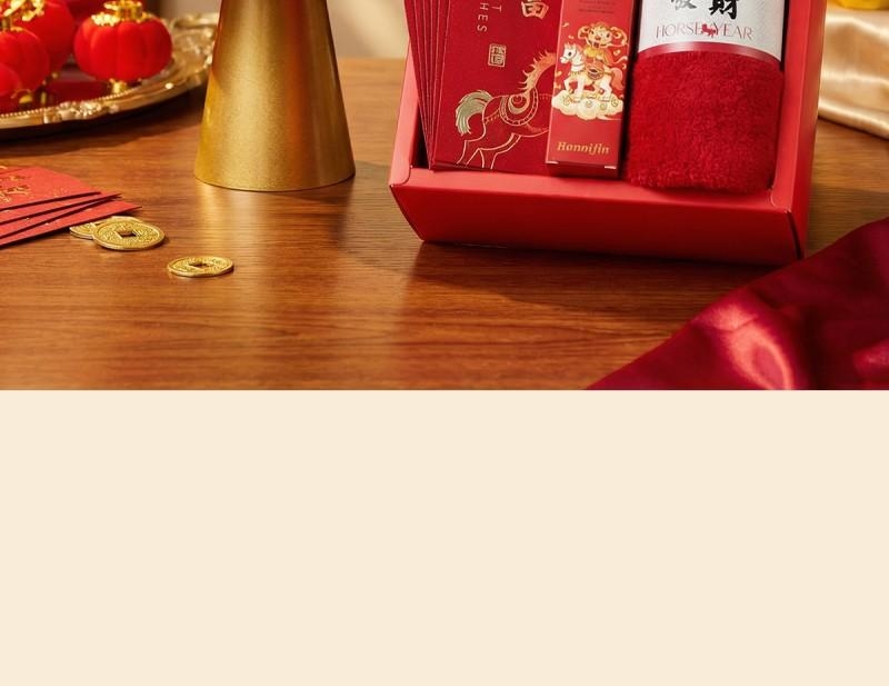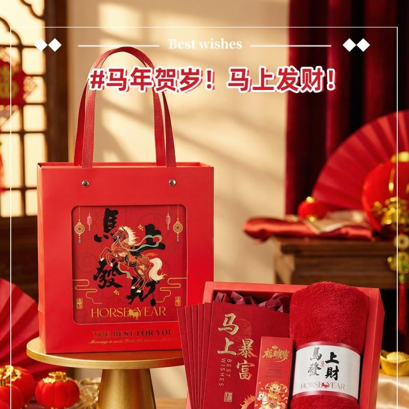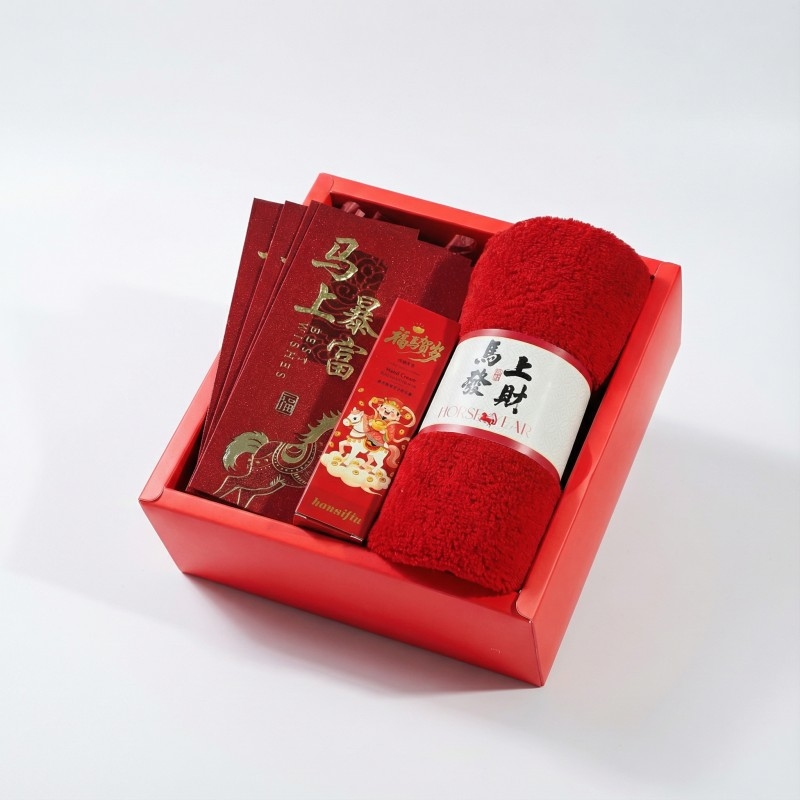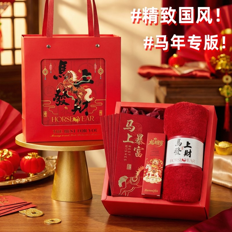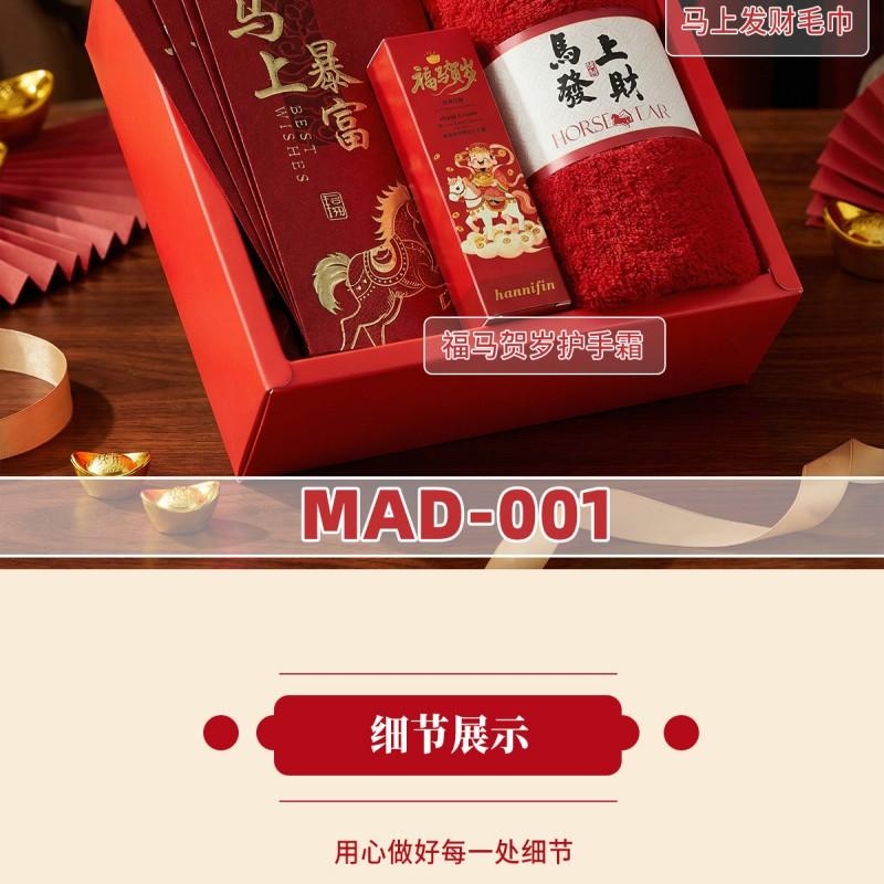 组合:马年红包*6张、马上发财毛巾75*34cm、福马贺岁滋润护手霜35g