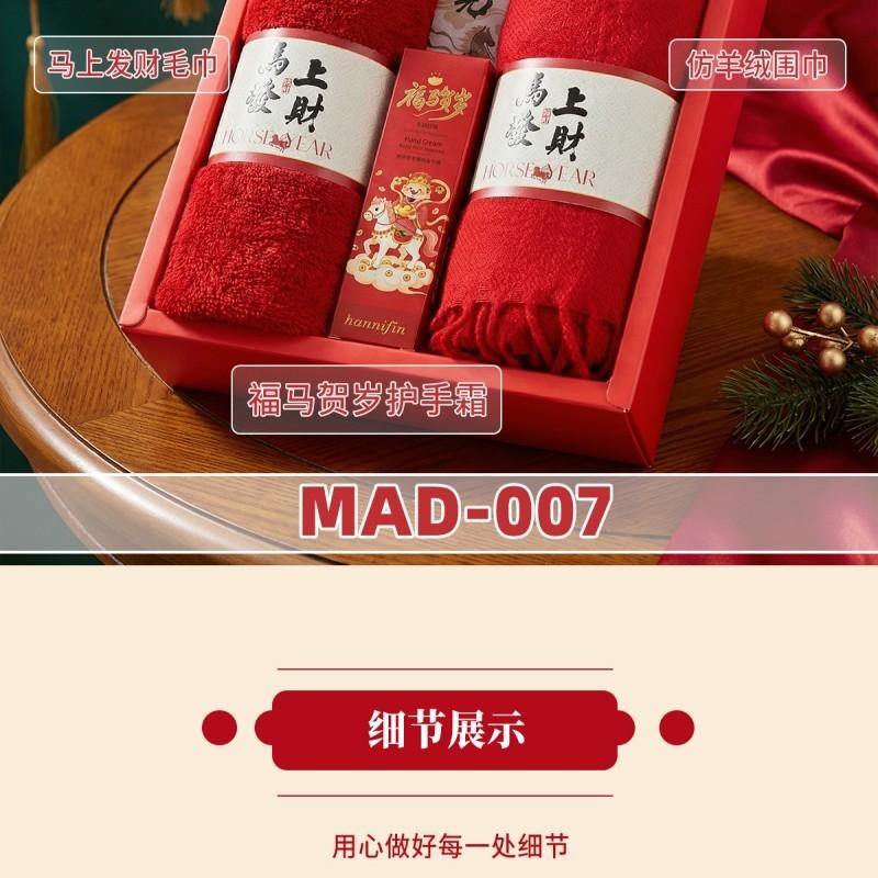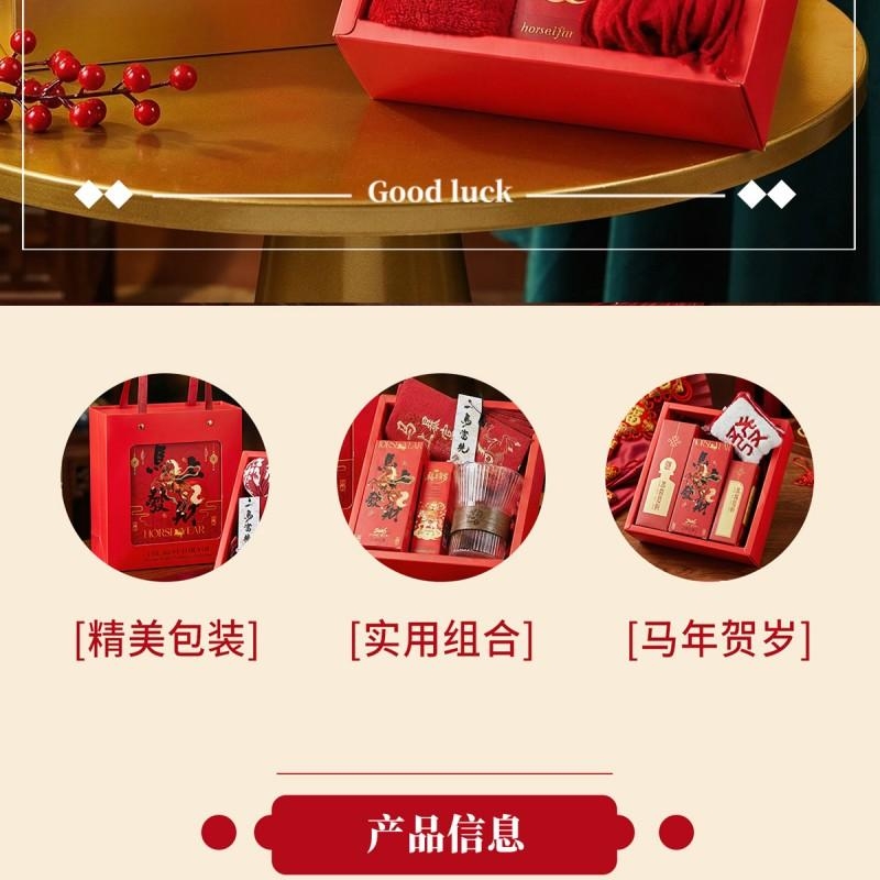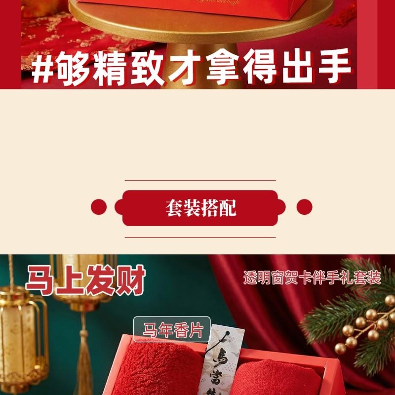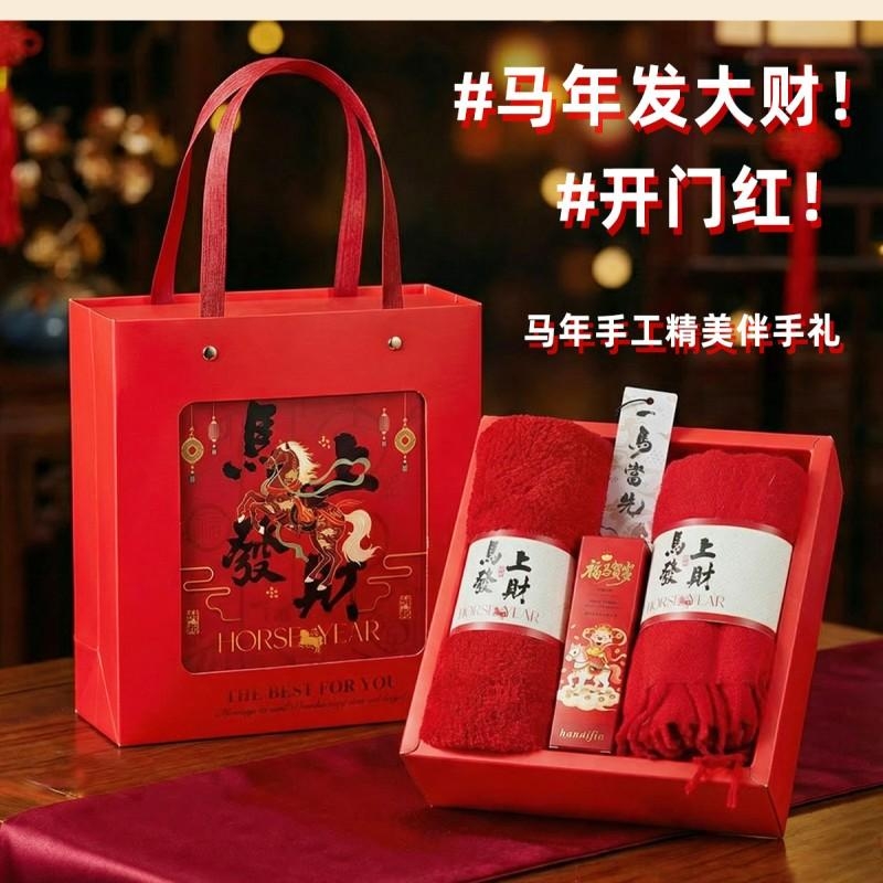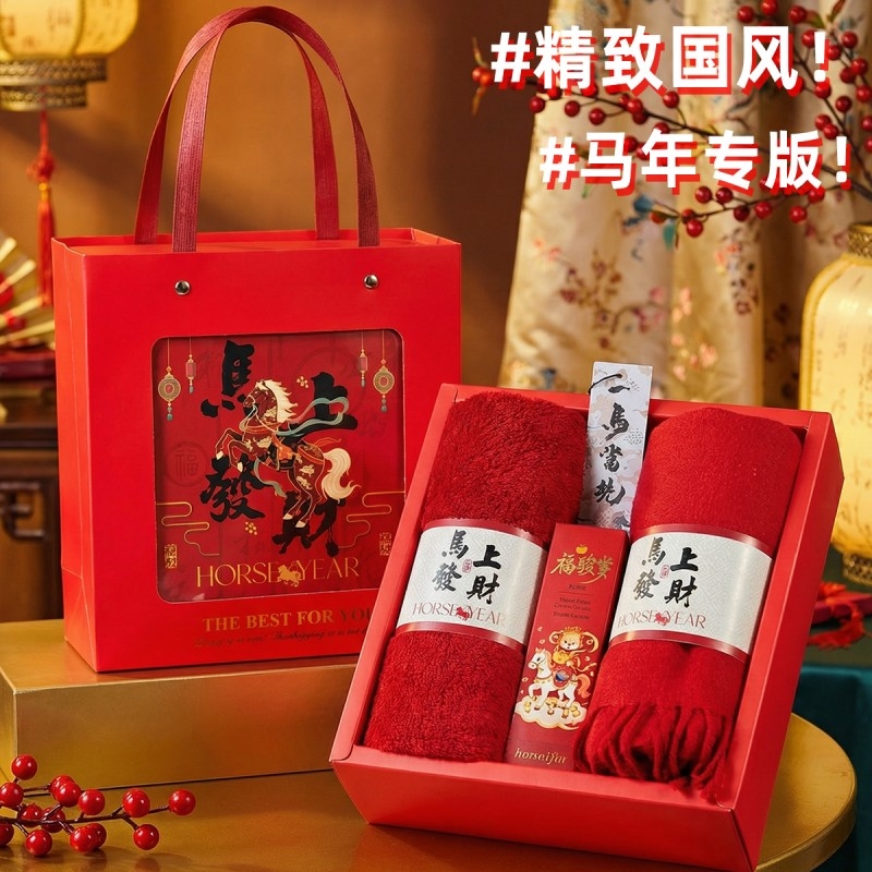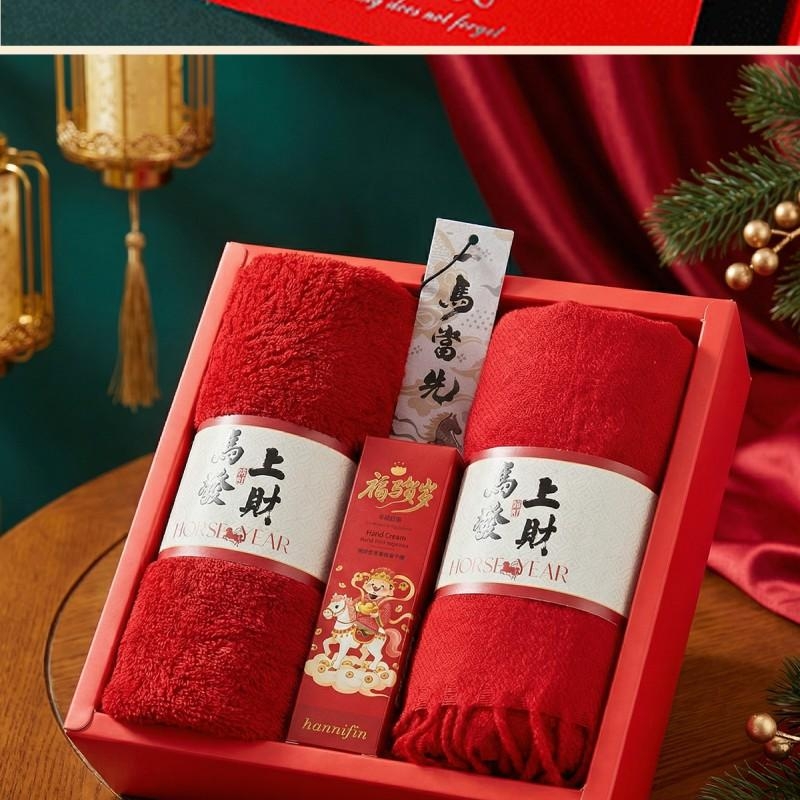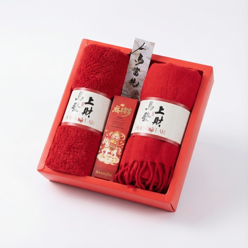 组合:马上发财毛巾75*34cm、马上发财仿羊绒围巾 220*33cm、福马贺岁滋润护手霜35g、一马当先香片香挂