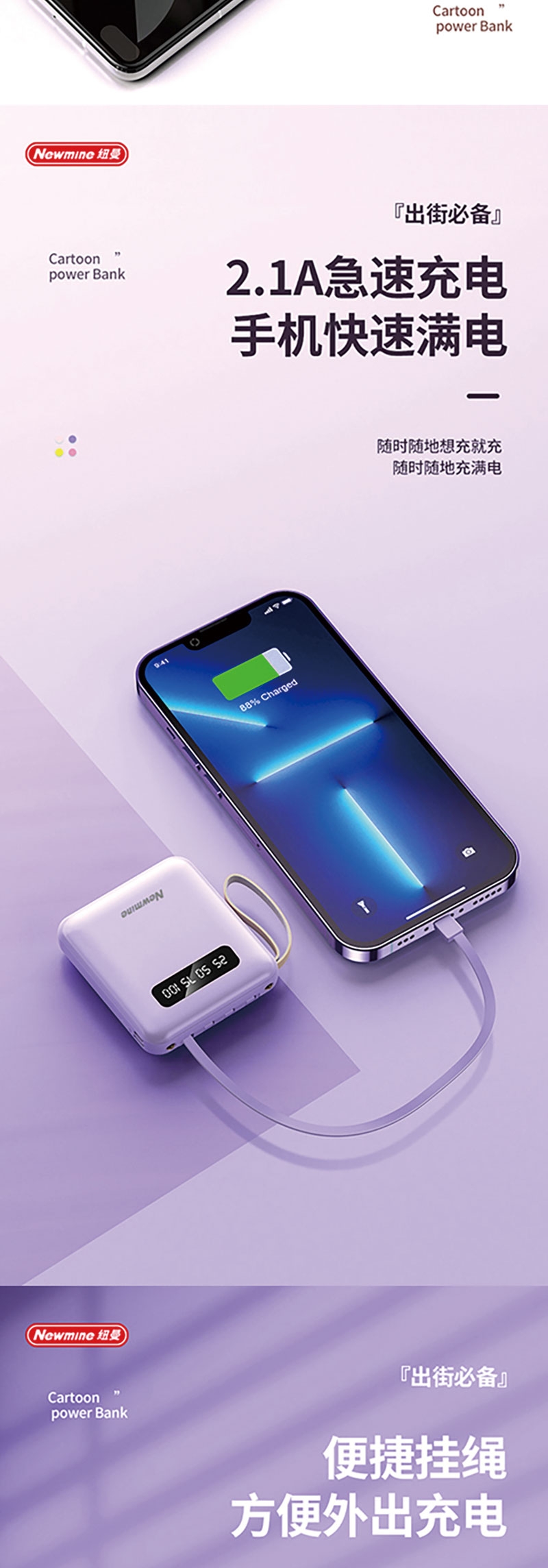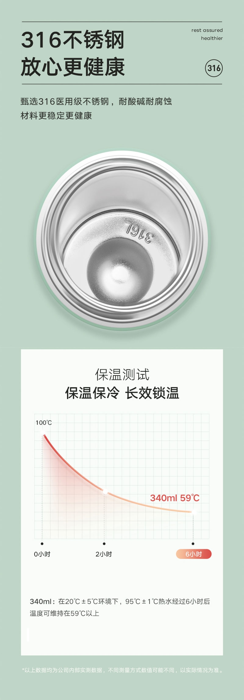 316L不锈钢内胆,饮水(钢)好• 医用级不锈钢;3C认证移动电源 自带充电线;精巧小直径,入包随行无压力