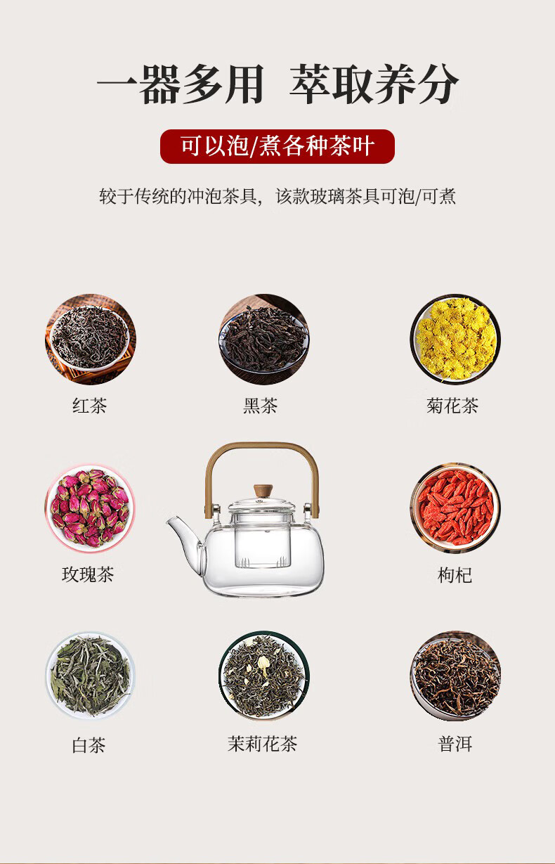 额定容量:0.8L玻璃煮茶壶