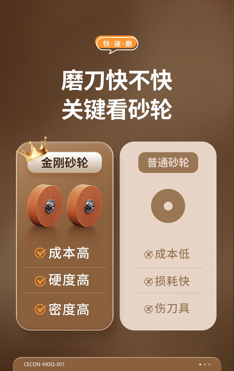 其他:可拆卸磨刀头,可以直接水冲清洗;(磨刀头为消耗品,砂轮正常使用损耗需客人自行购买配件)