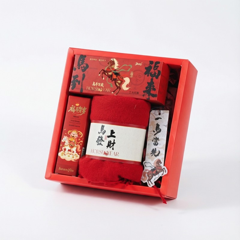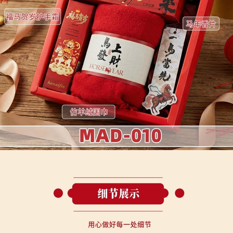 组合:一马当先香片香挂、马上发财仿羊绒围巾 220*33cm、福马贺岁滋润护手霜35g、福马贺岁红茶8g*2袋
