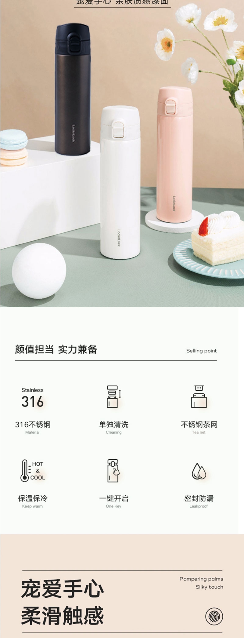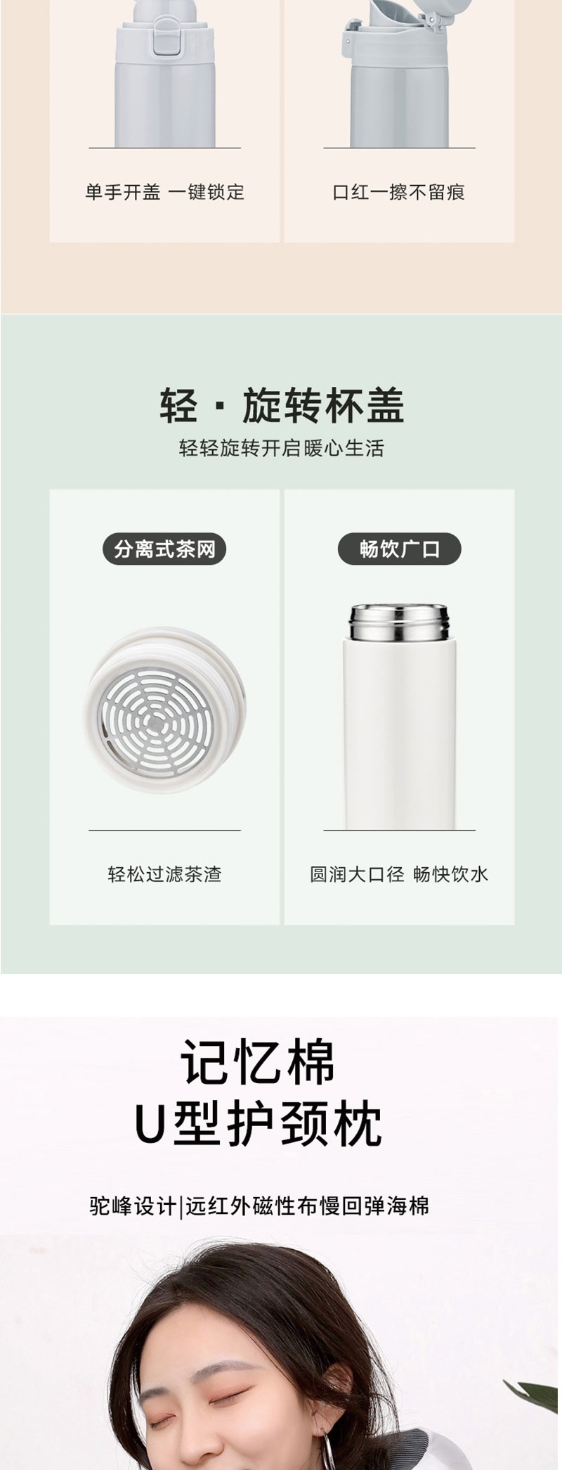 316L不锈钢内胆,饮水(钢)好• 医用级不锈钢;毛毡收纳盒,可重复利用更环保;慢回弹枕,让出行更舒服