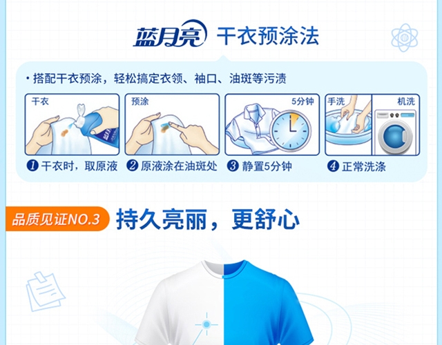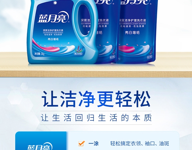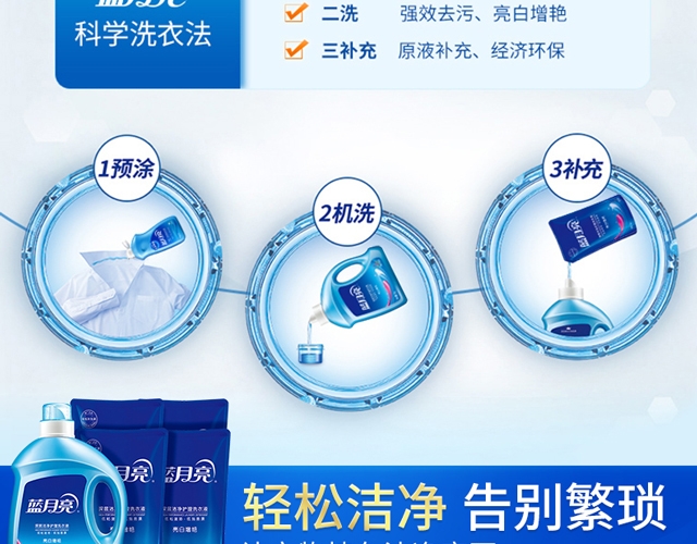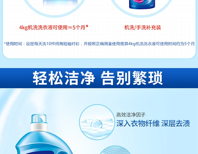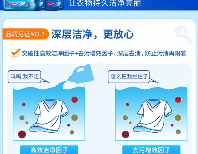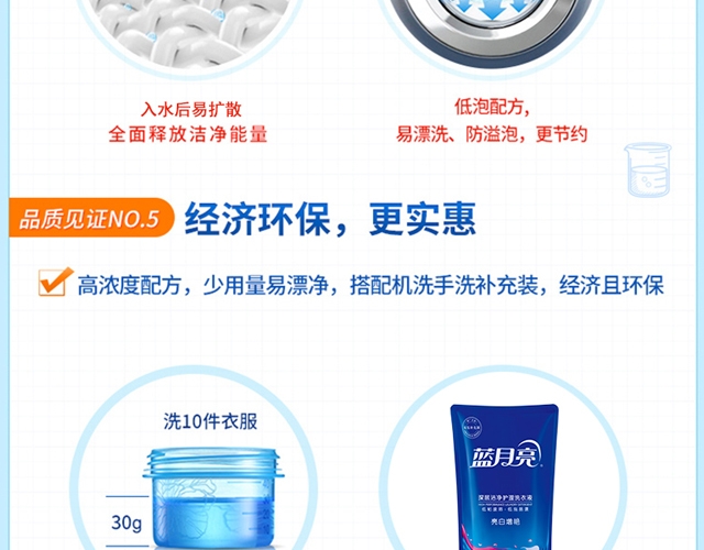 护衣护色,低泡易漂;配方温和,安心洁净;遇水速溶,易漂洗无残留