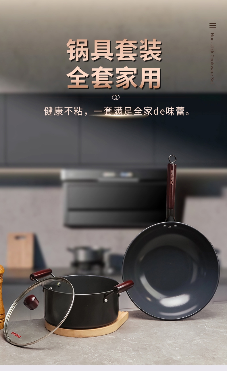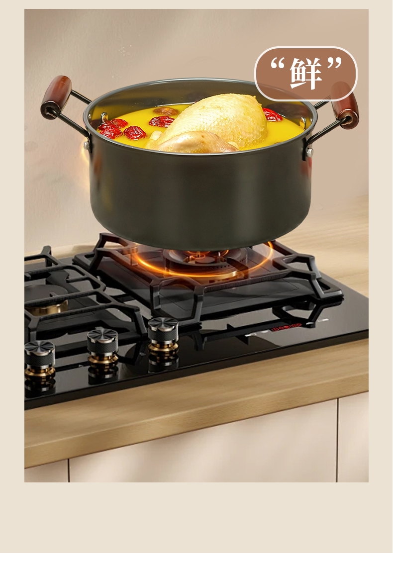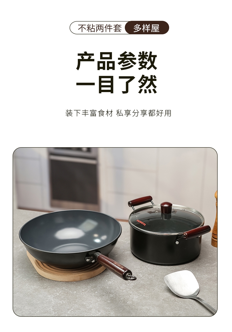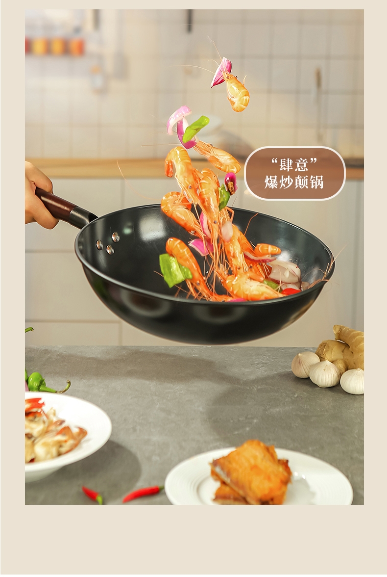 内表层采用零氟超硬陶瓷层,耐磨持久不粘;锅体优质精铁板材,一次锻压成型;手柄采用原木材料,人体力学设计,古朴大方,手感极佳;锅盖采用钢化玻璃,抗冲击性和耐高温更强,不易炸裂;燃气灶、电磁炉通用,不挑灶具