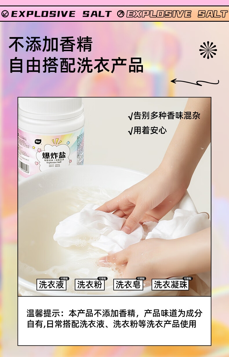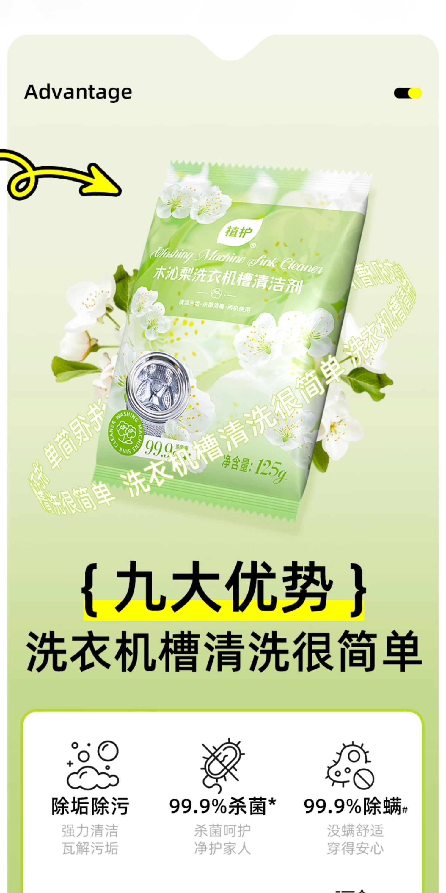 除菌除螨,去渍柔护,低泡易漂,省心洁净;无磷配方,全家适用,添加活性因子,洁净出彩;添加蛋白酶成分,瓦解顽固污渍及经期血渍等,还原衣物;添加表面活性剂和污渍乳化剂,去污能力强
