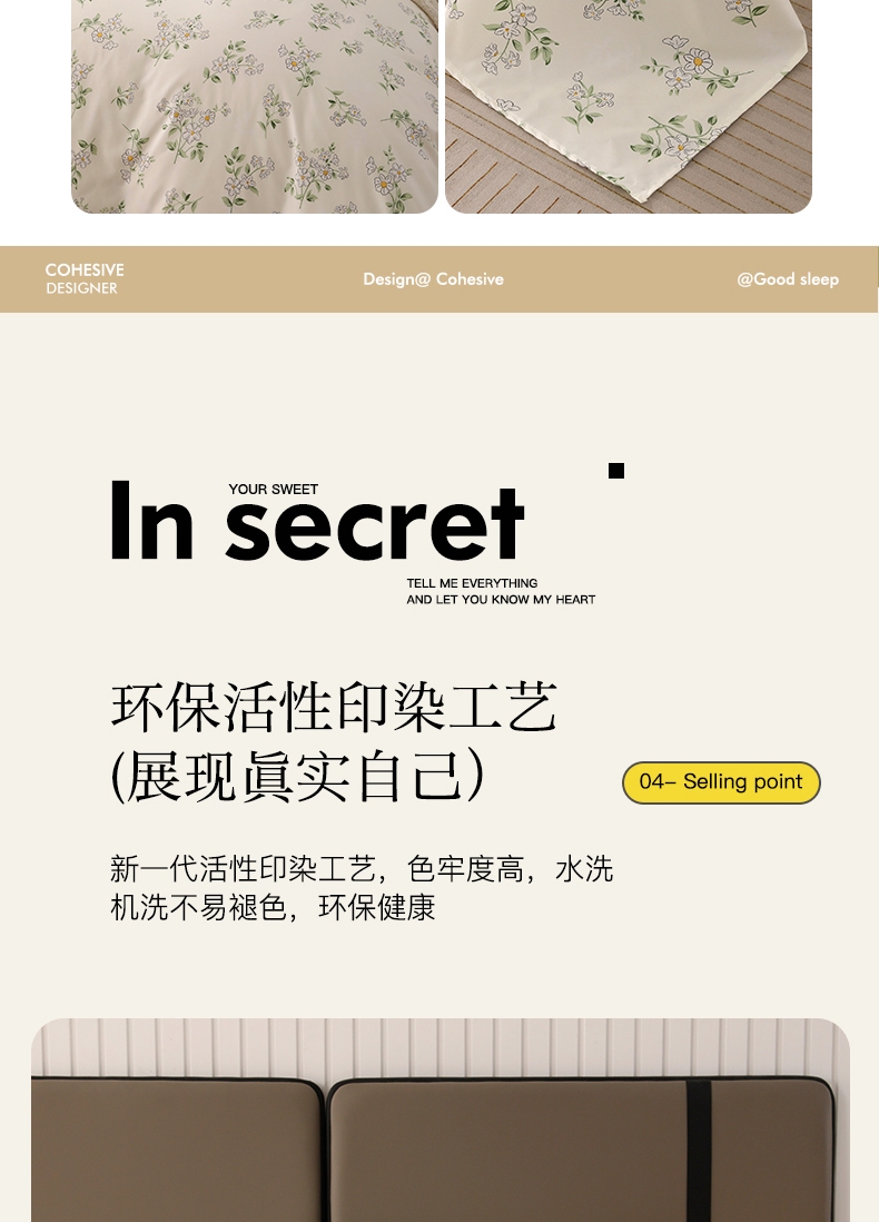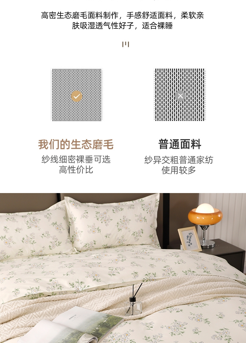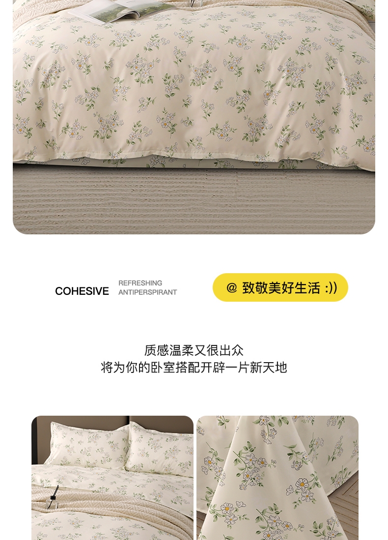 "吸湿排汗,干爽不黏腻,整晚舒爽好眠。;.“轻盈柔软,睡眠无负担,拥抱清新梦境。;"简约设计,易搭家居,营造氛围。