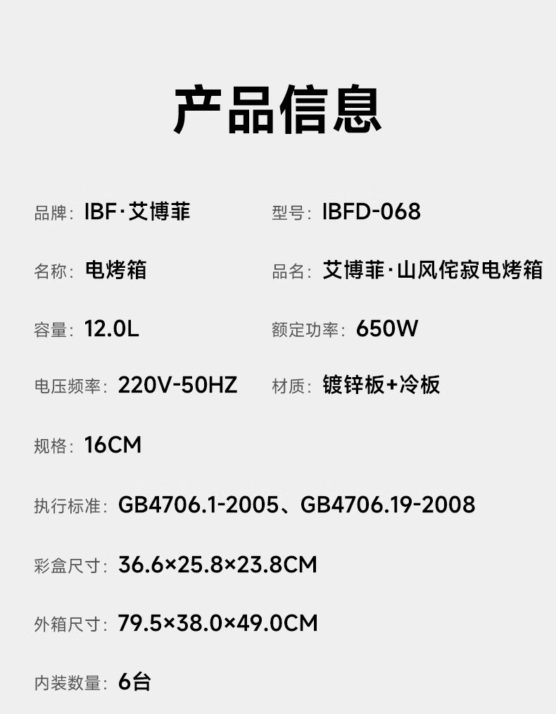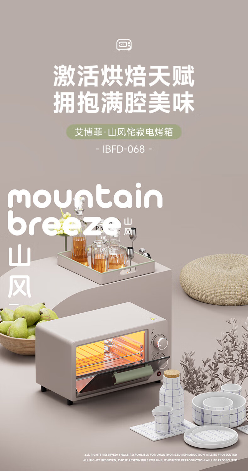 艾博菲 山风侘寂电烤箱12LIBFD-068