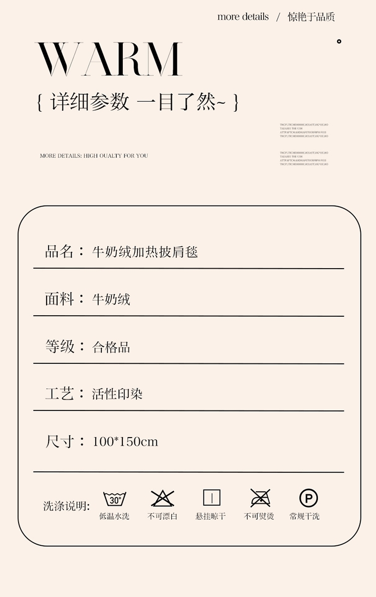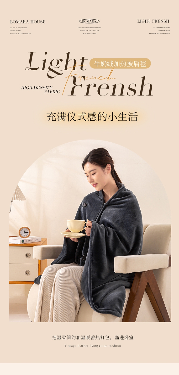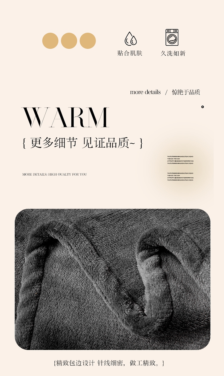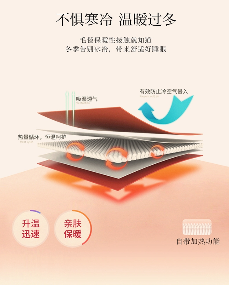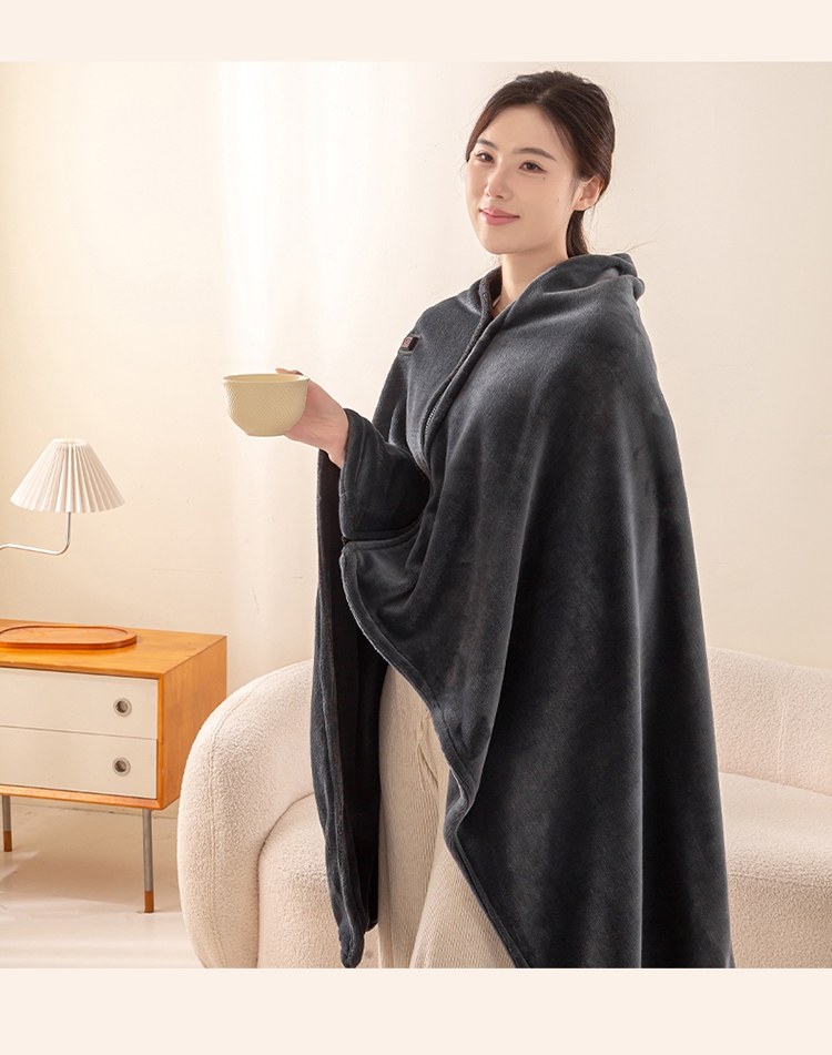 甄选牛奶绒面料 绒毛密集质感厚实、触感温润宠溺肌肤;加热毛毯通过发热技术,能在短时间内快速升温尤;USB供电,精美拉链设计·方便日常生活