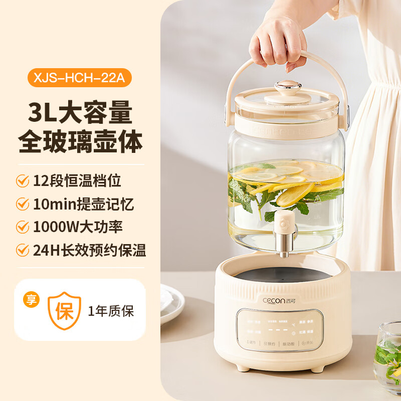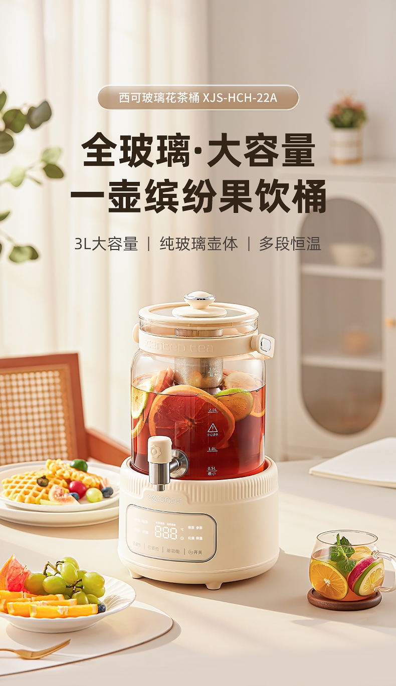 西可 全玻璃养生壶新款花茶壶3LXJS-HCH-22A