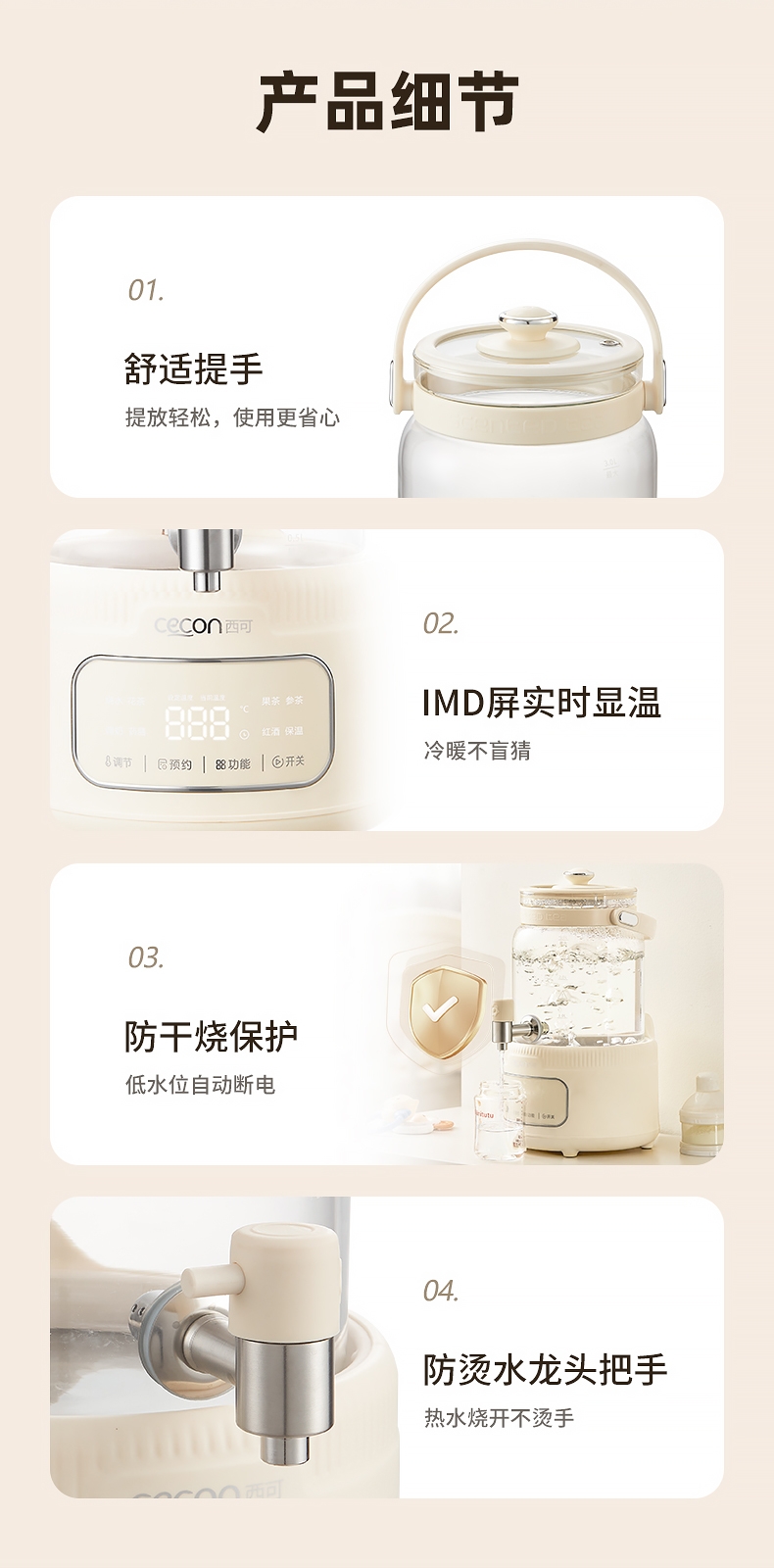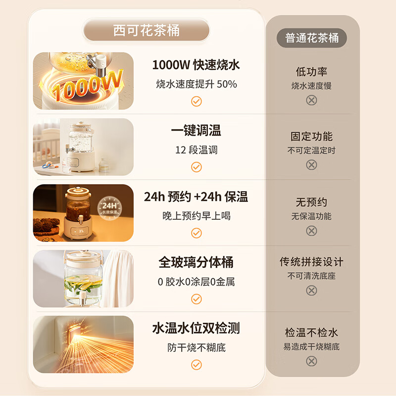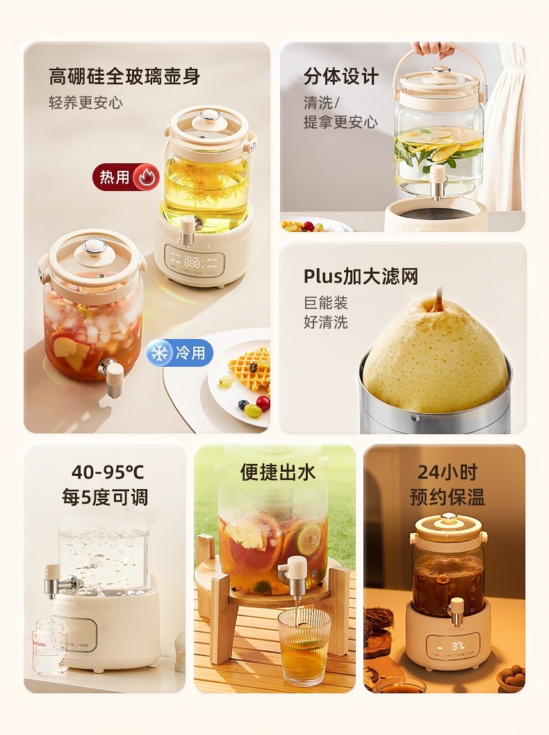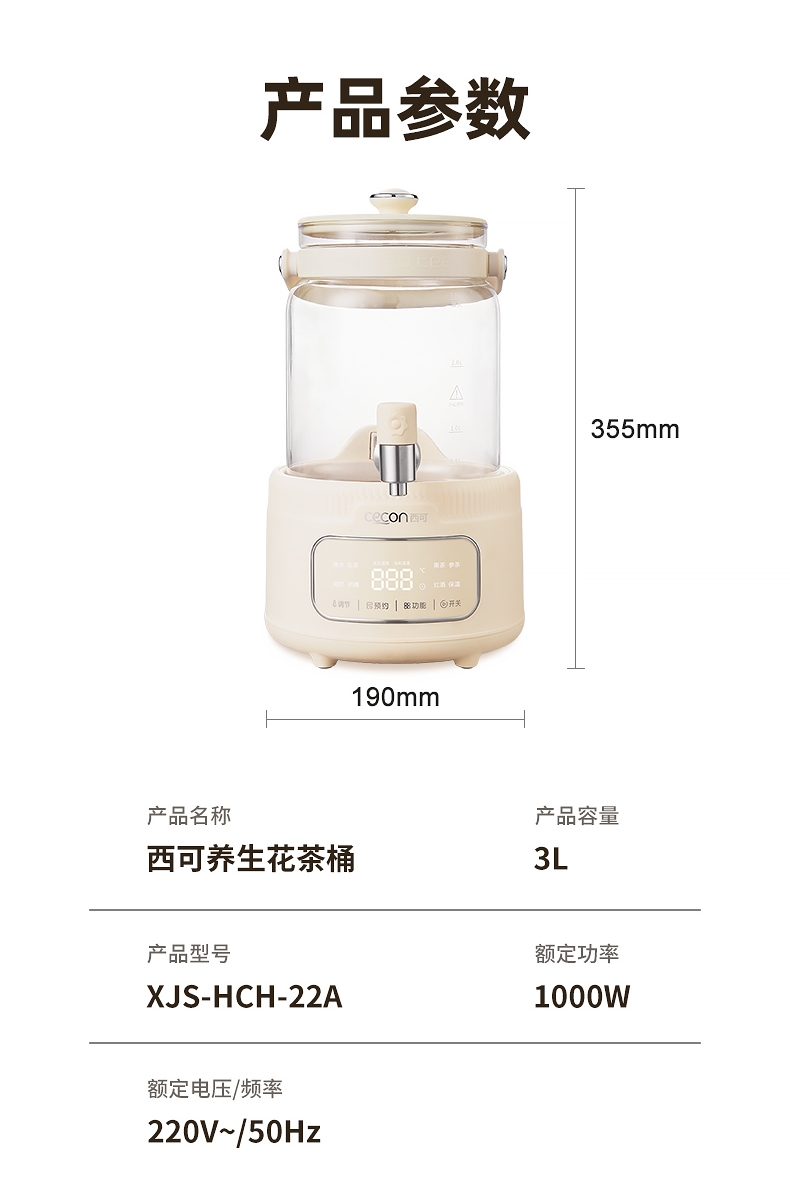附加功能:自动保温,定时预约,防干烧,防溢,自动提壶记忆,定时