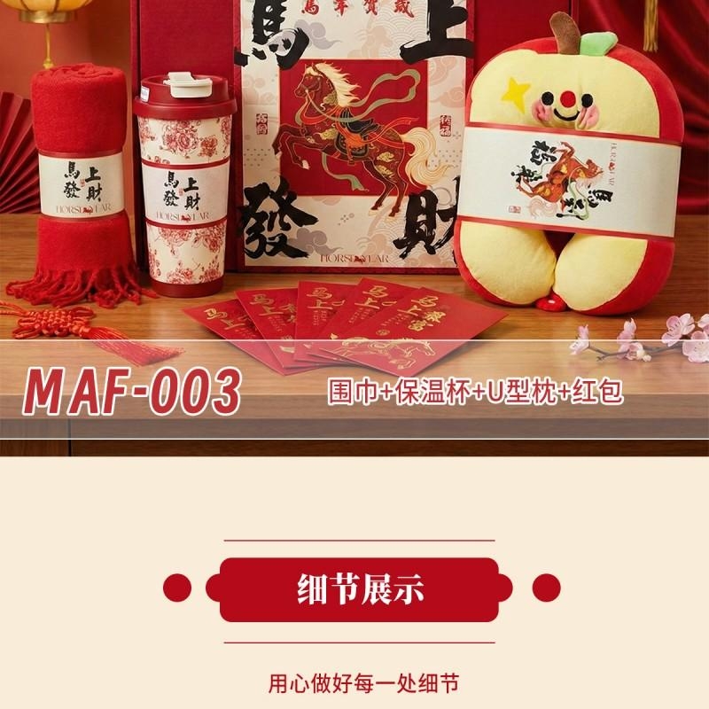 组合:马年红包*6张、保温杯 316不锈钢500ml、记忆棉平平安安U型枕、马上发财仿羊绒围巾 220*33cm
