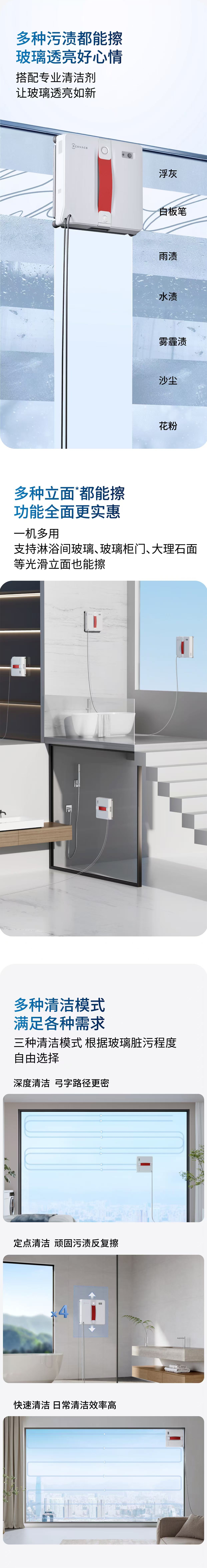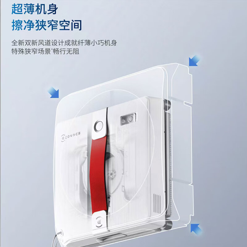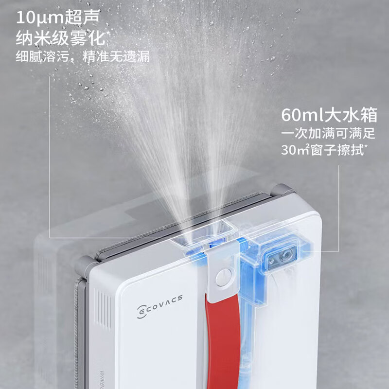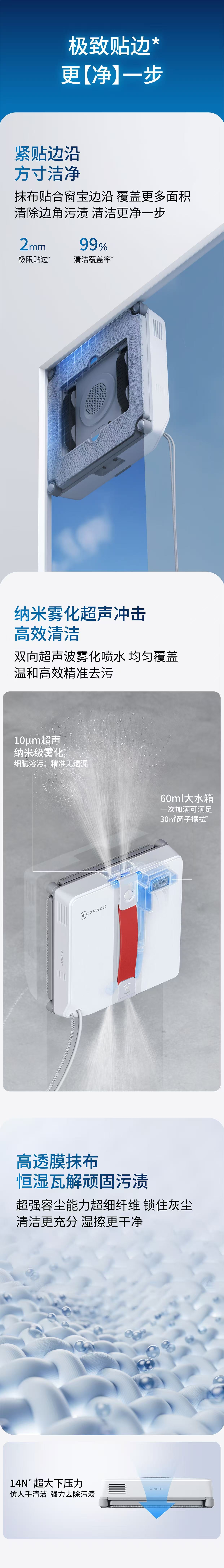 超薄机身 擦净狭窄空间;全新双新风道设计成就纤薄小巧机身;超声波雾化喷水精细湿擦,精准去污