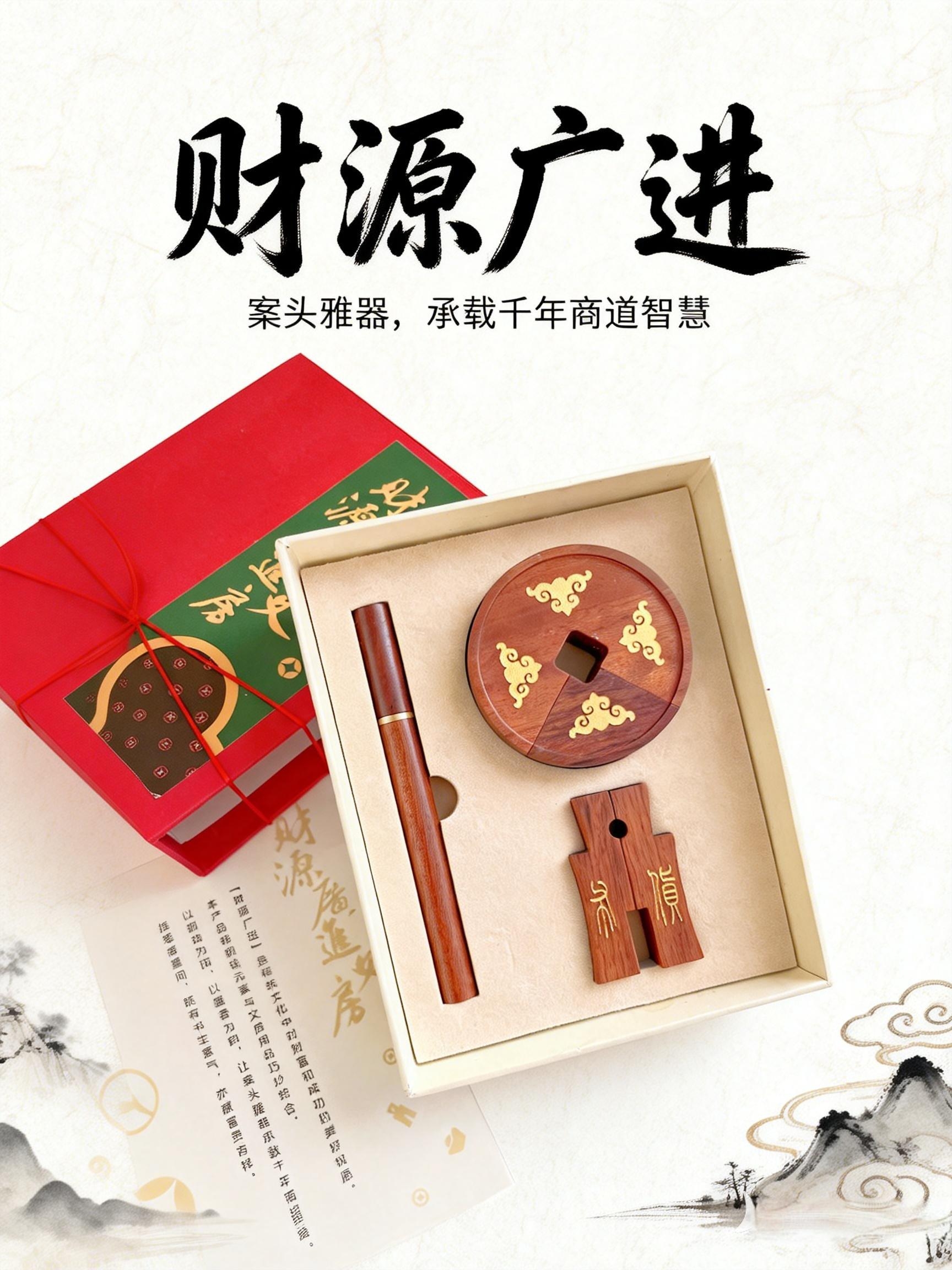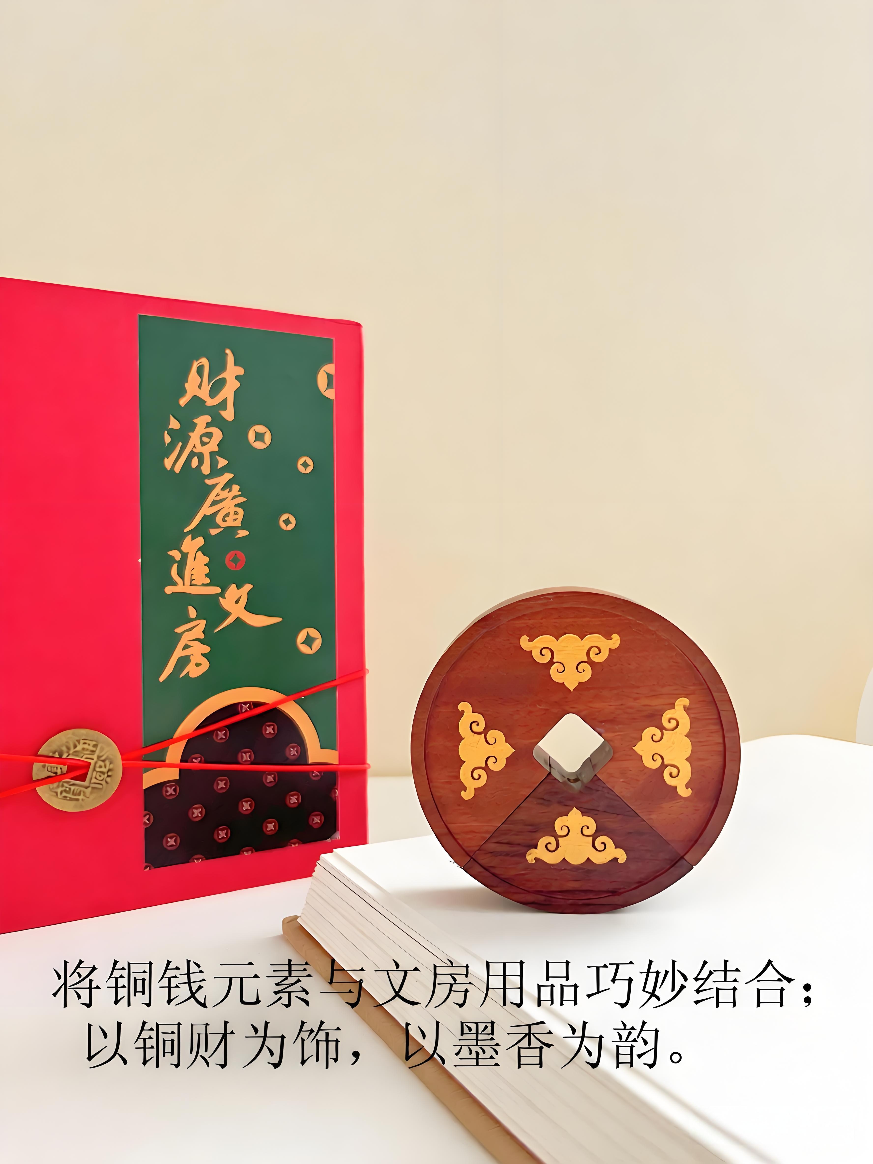 新年春节伴手礼,财源广进寓意好;名木材质,创新设计;可定制logo