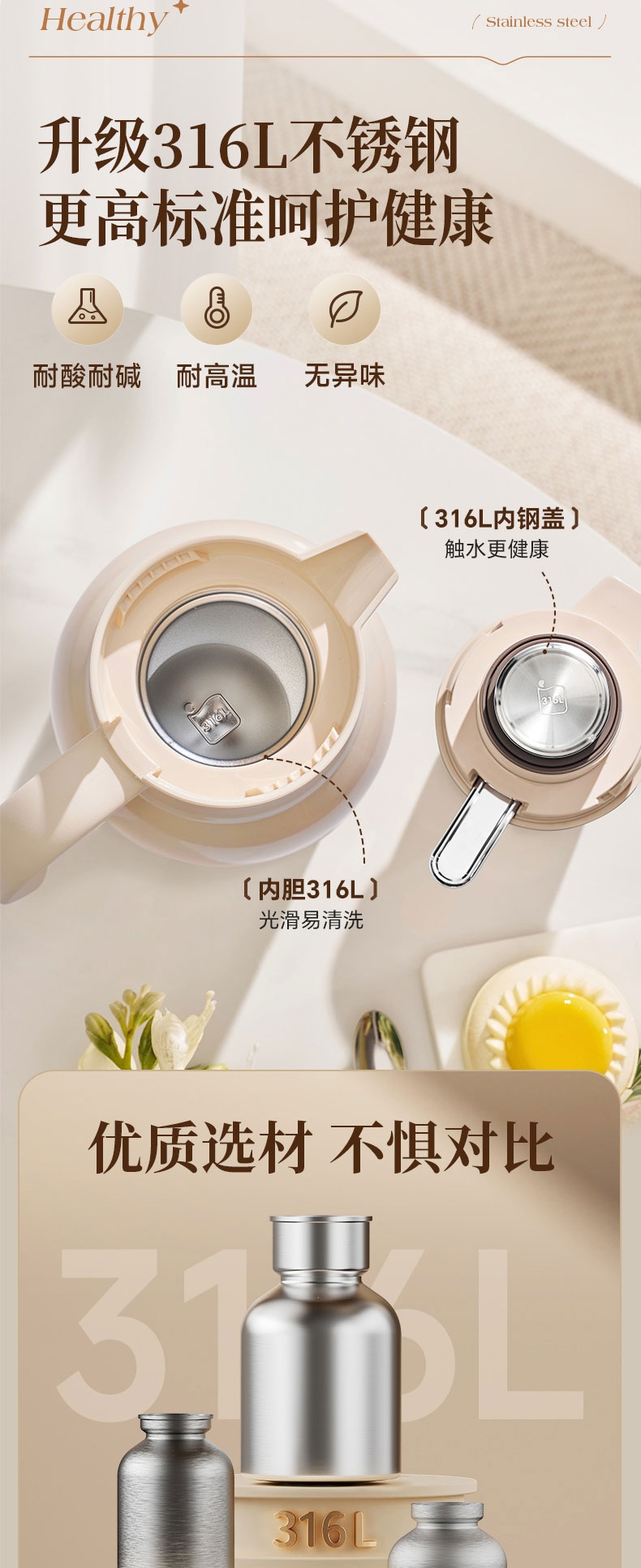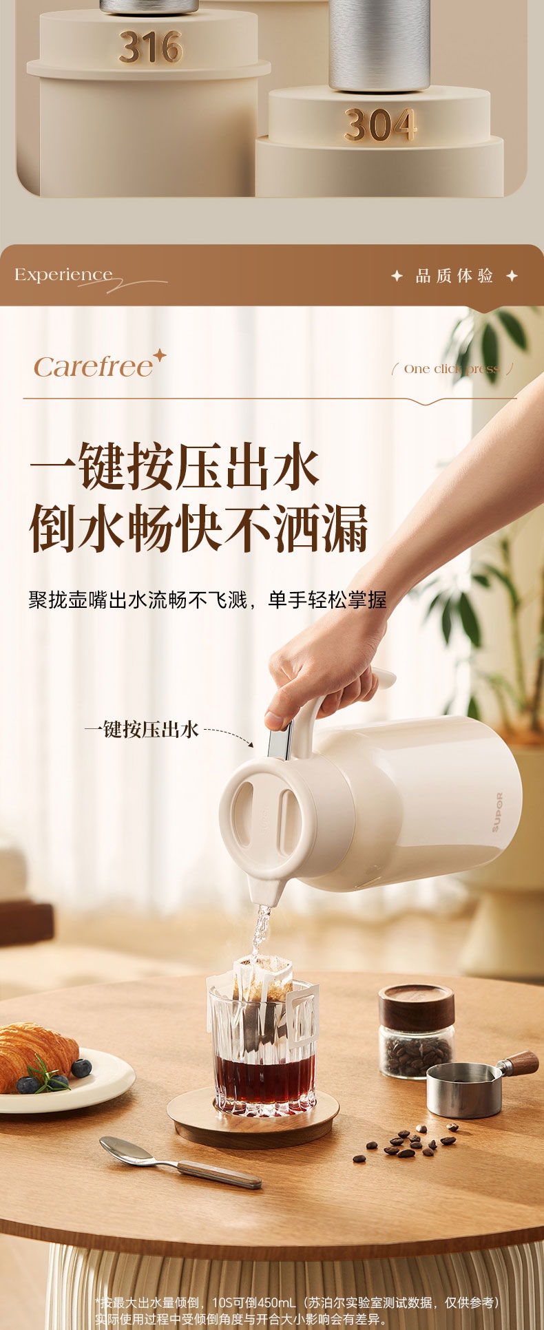 316L不锈钢,耐磨耐用耐腐蚀;饮口轻松拆卸,清洗更便捷;轻音杯垫,摆放轻音,不易倒