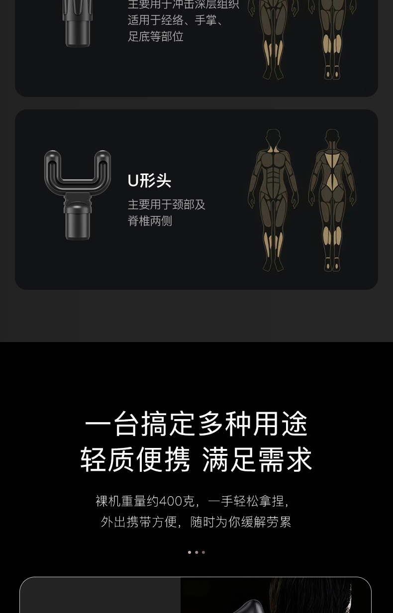 高频无刷电机 10小时持久续航;半导体高新材质 5挡强劲动力;10mm振幅快速激活 18kgf强劲推力