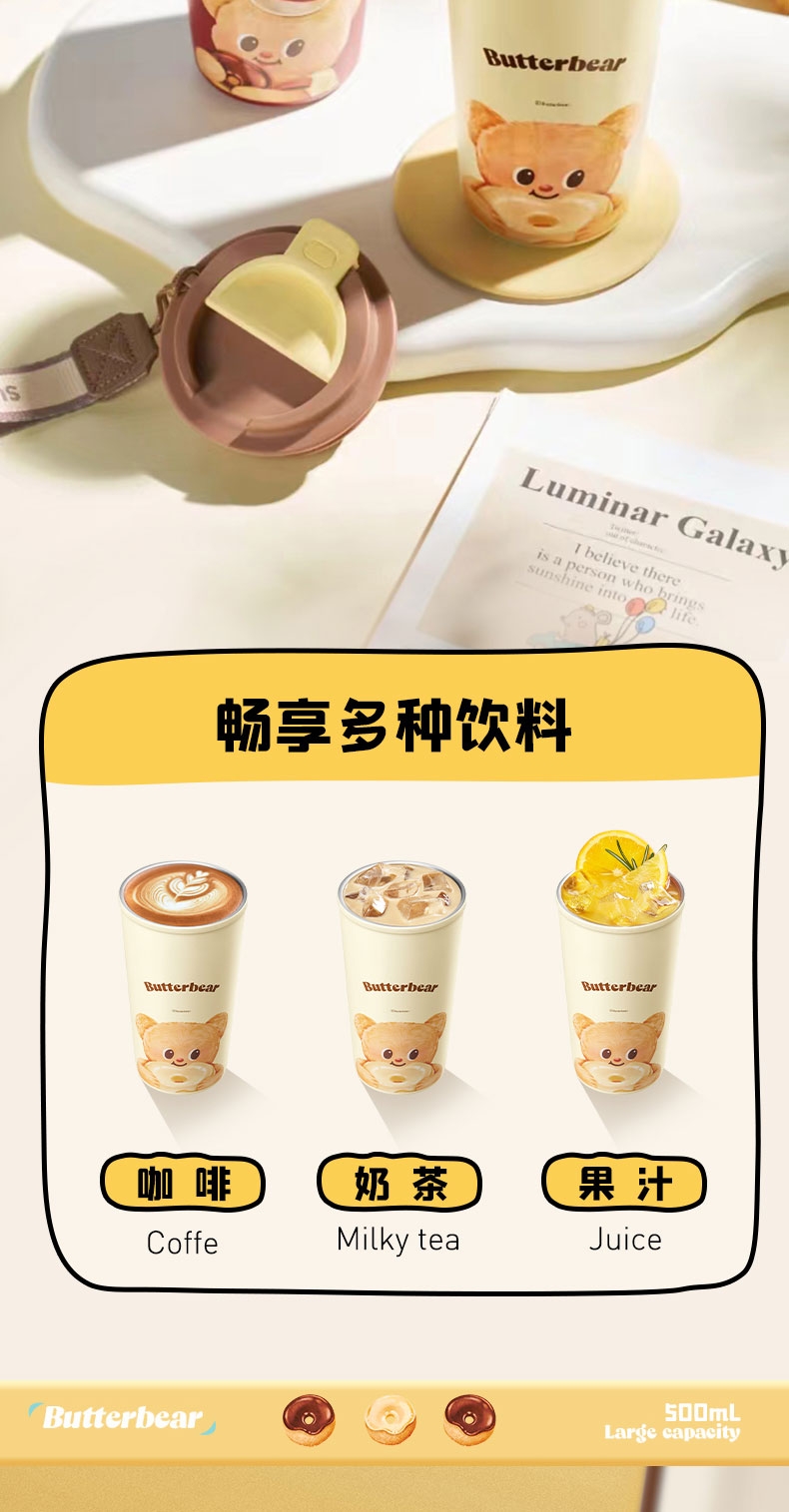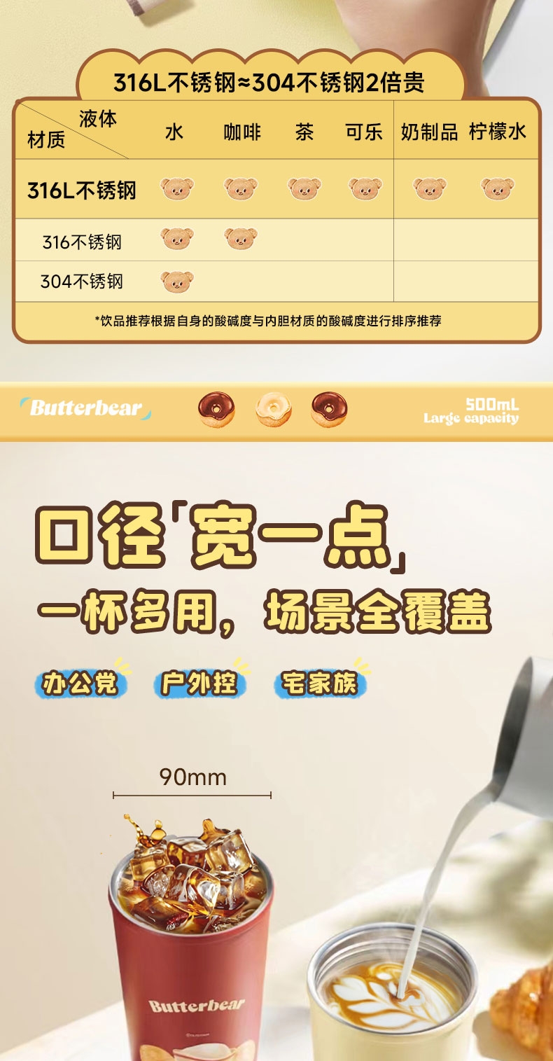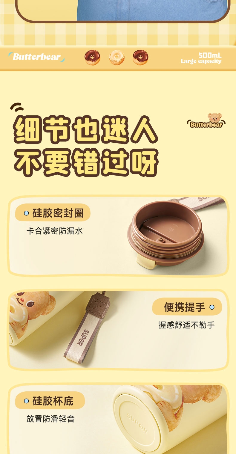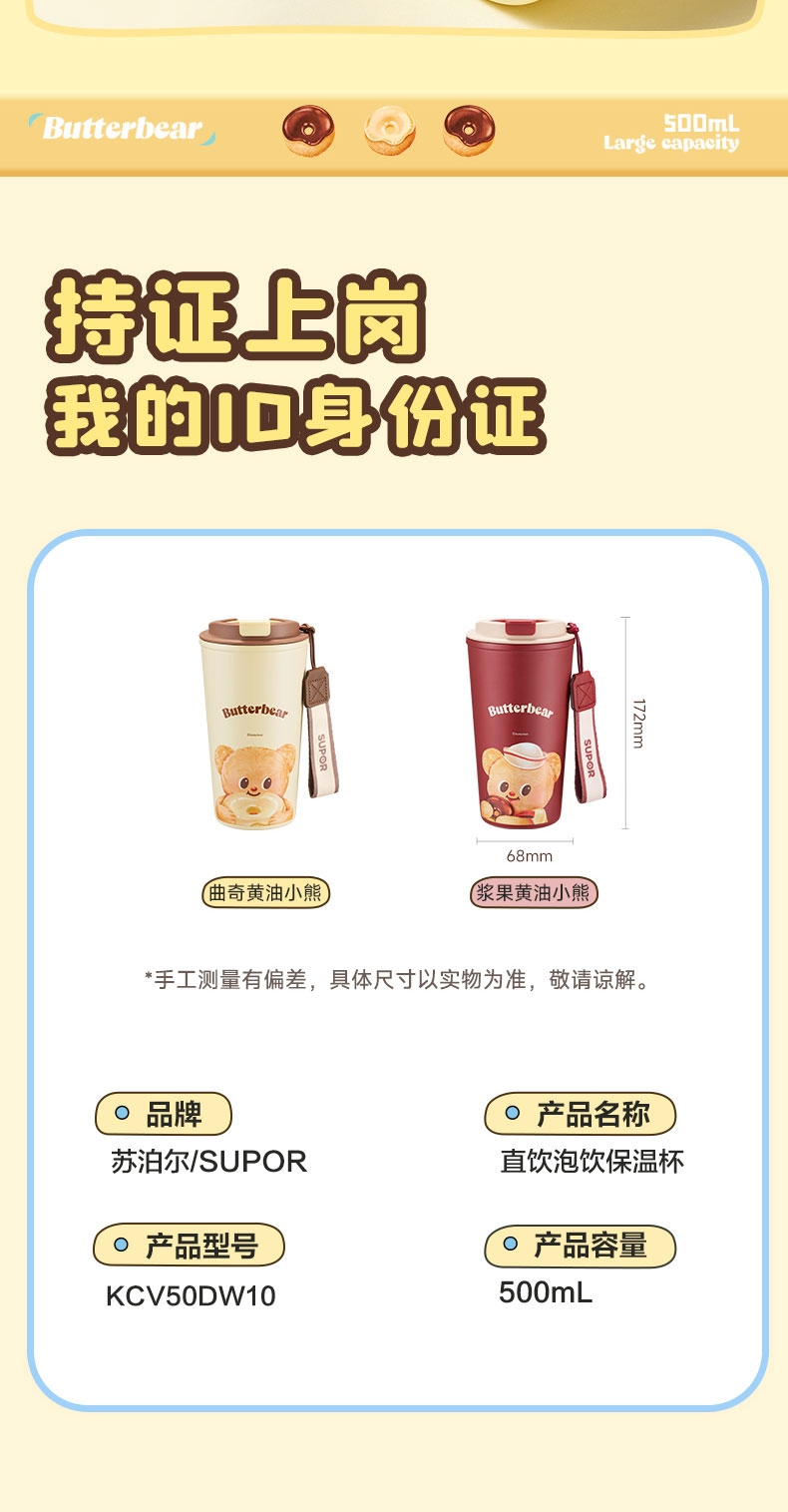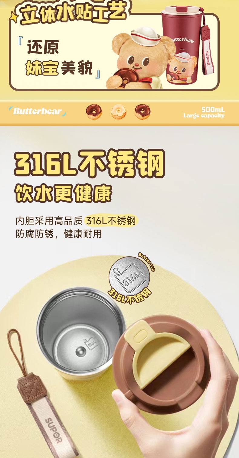 苏泊尔 黄油小熊联名保温杯咖啡杯IP款KCV50DW10