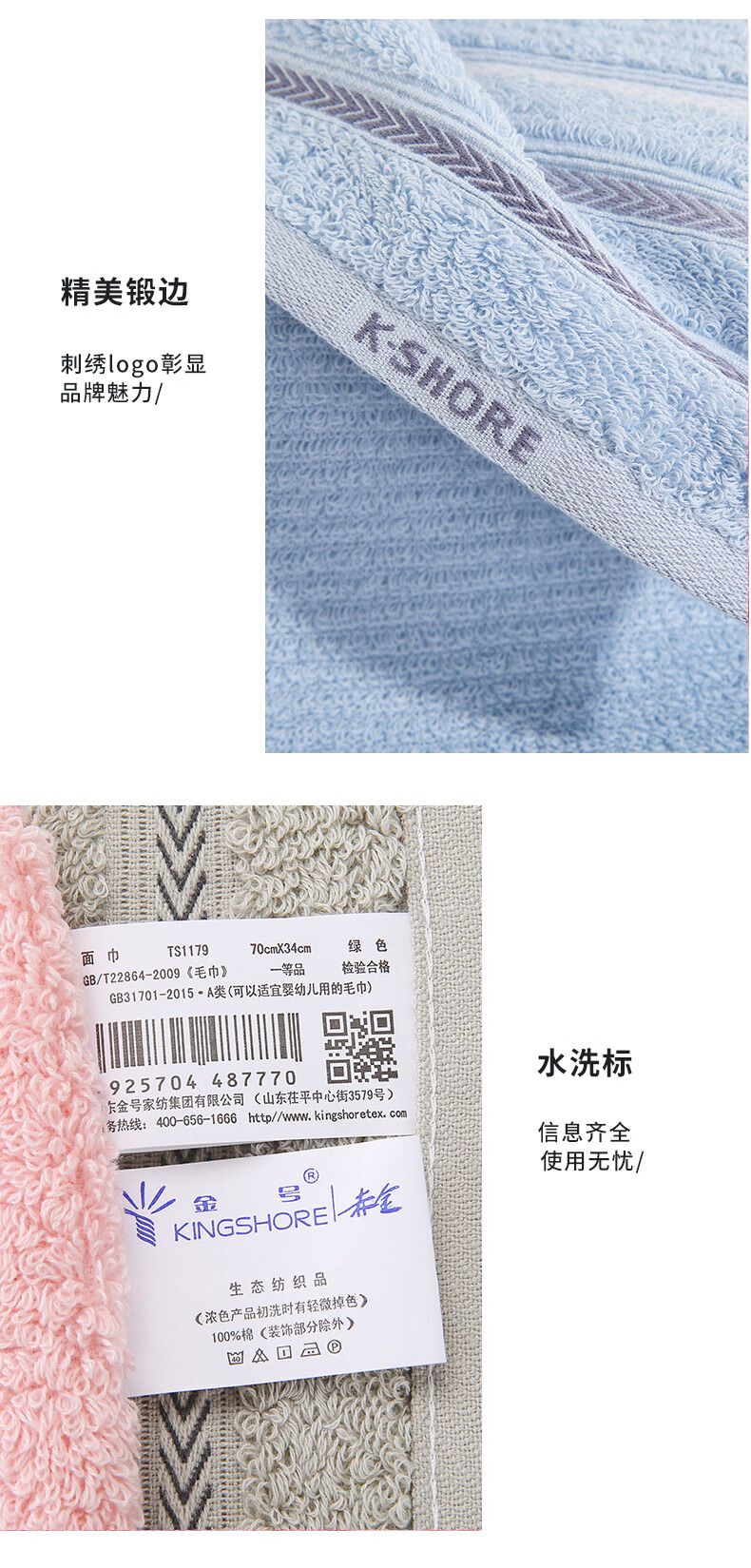 用心选好棉制成棉纤维,细长而柔软通过生产工艺让棉纤;精梳大毛圈蓬松丰盈,加长毛环易吸水储水,轻轻擦拭即;无甲醛、无荧光剂、无致癌香胺,严选好材,纤长细软