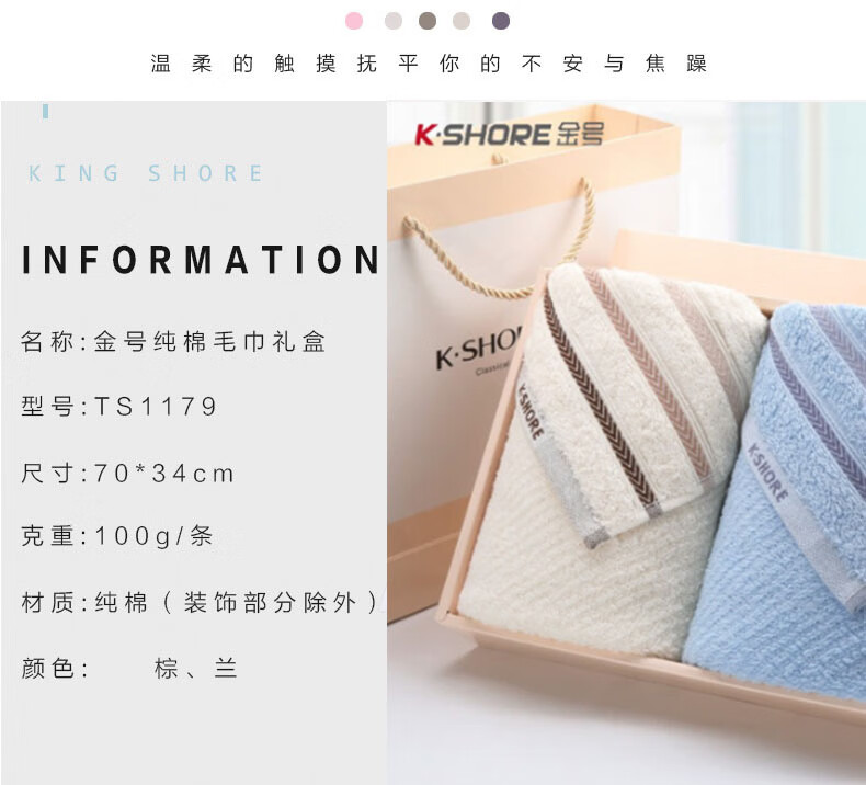金号 毛巾礼盒2条装纯棉提缎面巾TS1179