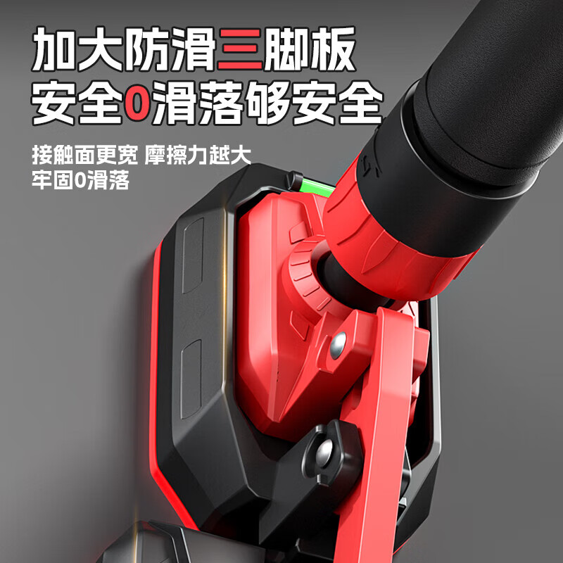 专利嵌入式结构锁扣26道防滑卡齿 紧紧锁住不易滑;三角三支撑结构三角上下联动,上下脚板严密贴紧墙面;加厚加粗钢管精钢材质 不易弯曲