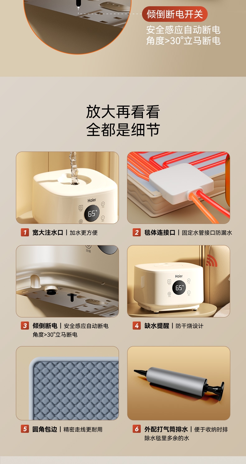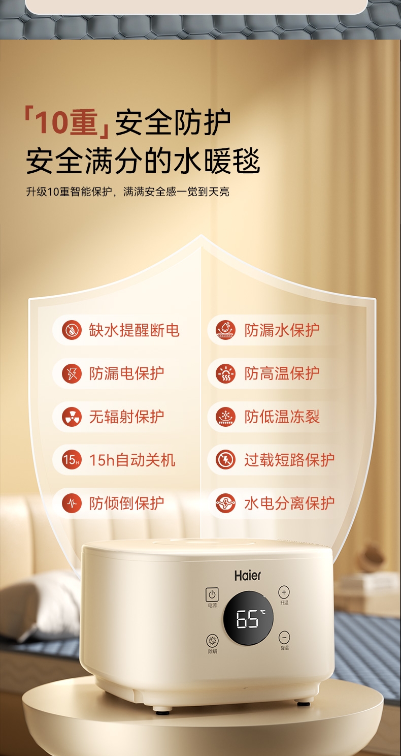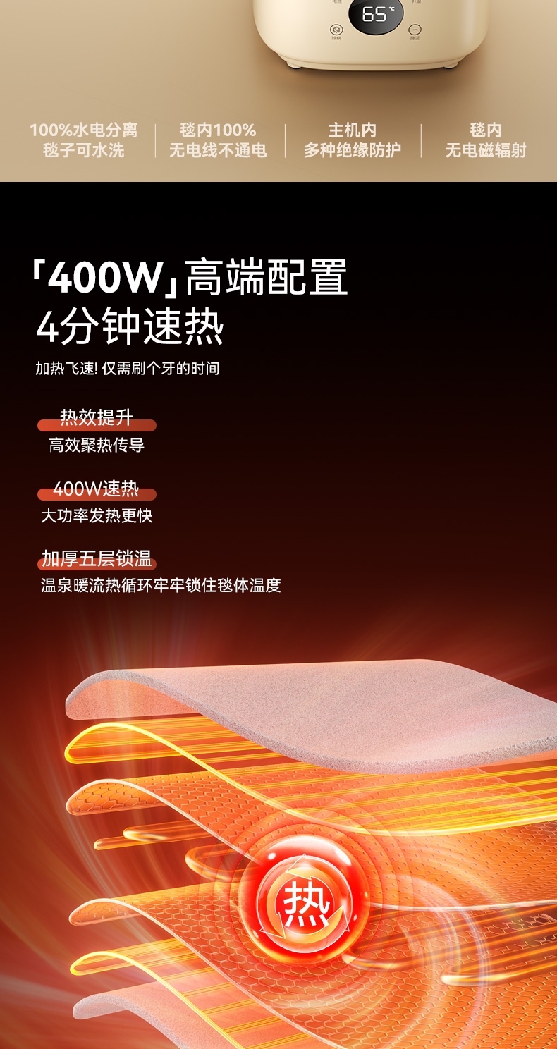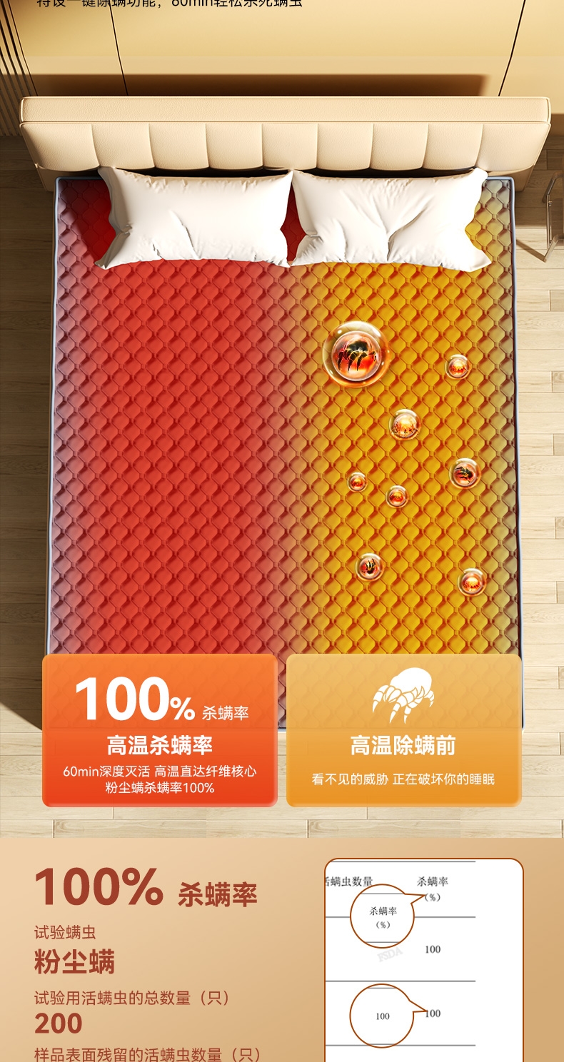 水电分离 安全不漏电;100%杀螨率洁净干爽;轻音运行安睡整晚