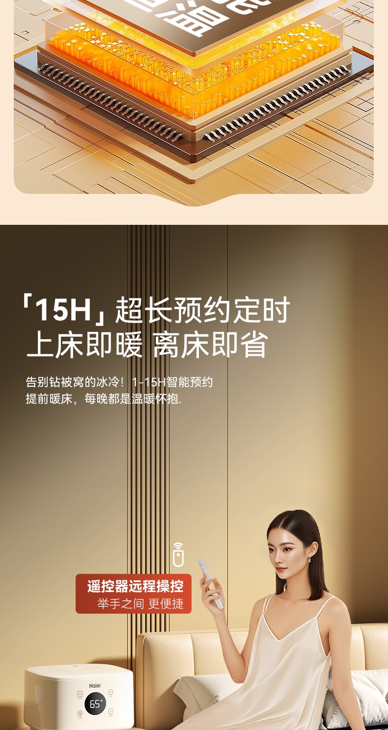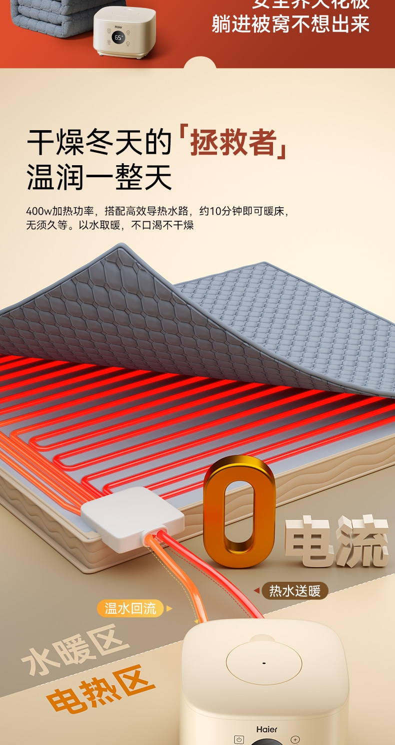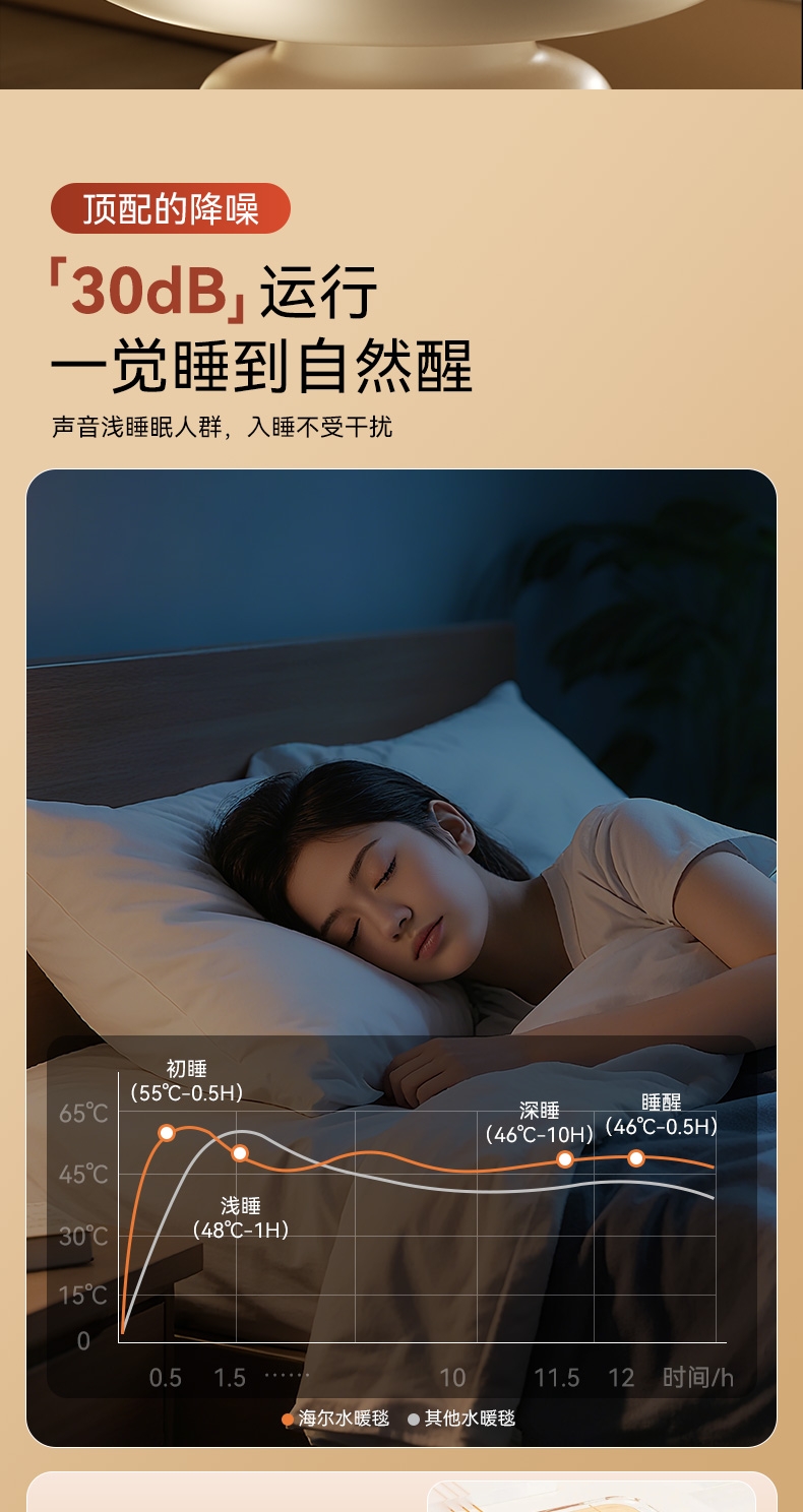 水电分离 安全不漏电;100%杀螨率洁净干爽;轻音运行安睡整晚