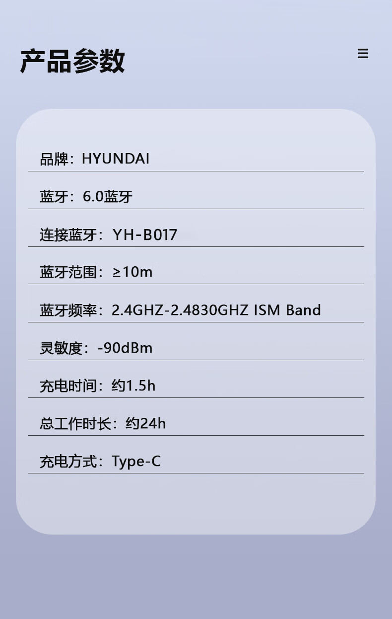 HYUNDAI 灵莺蓝牙耳机YH-B017
