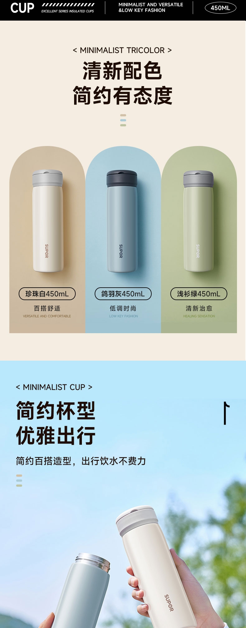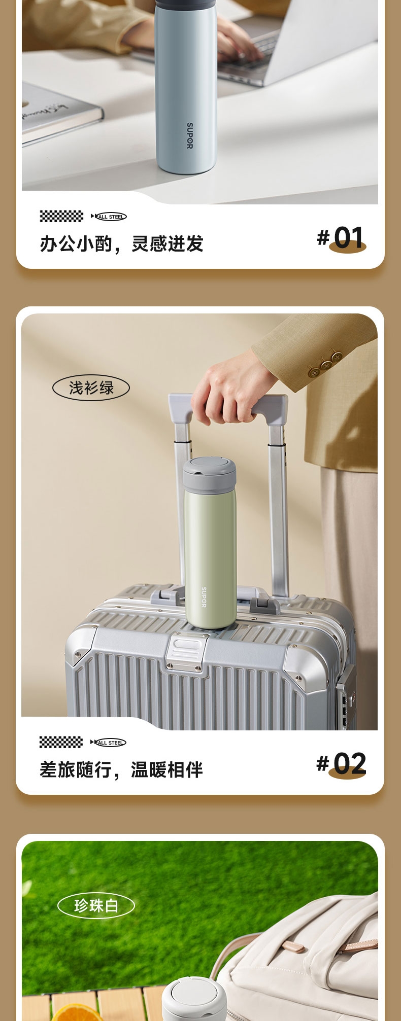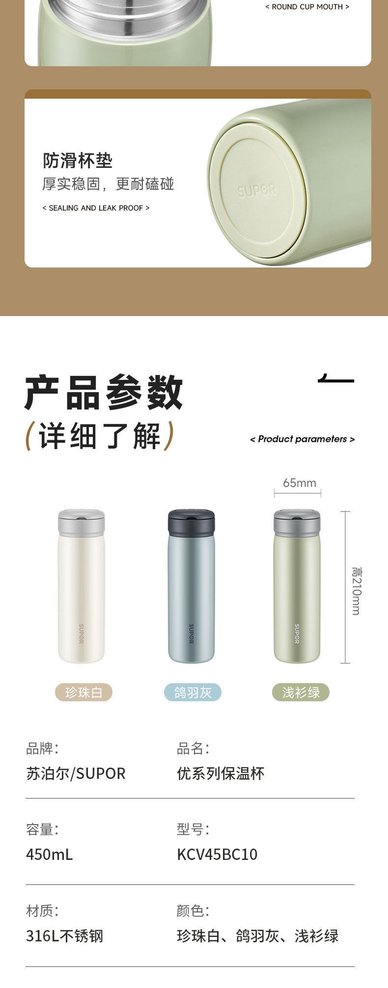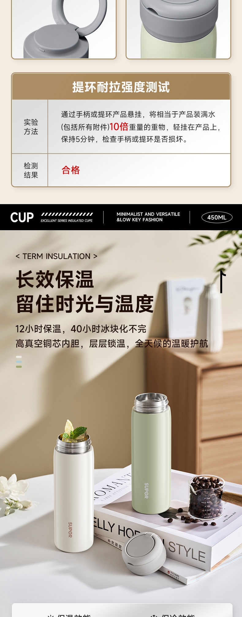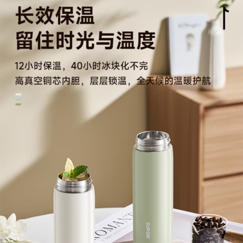 苏泊尔 手提商务会议316不锈钢保温杯KCV45BC10