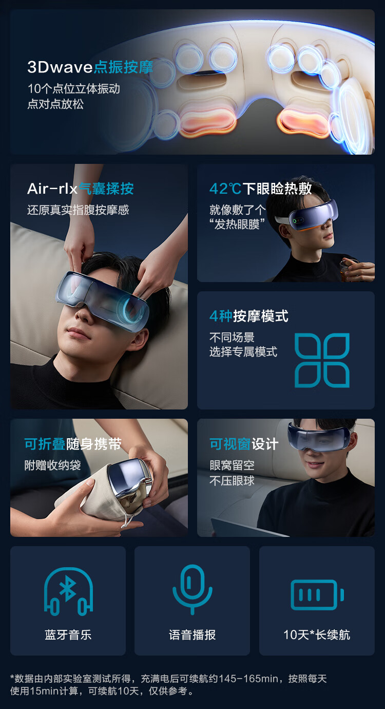 点振x揉按x热敷多效解压 专业护眼;快节奏高压生活眼睛默默承担高负荷;眼部全能按摩大师3重按摩体验 即刻放松