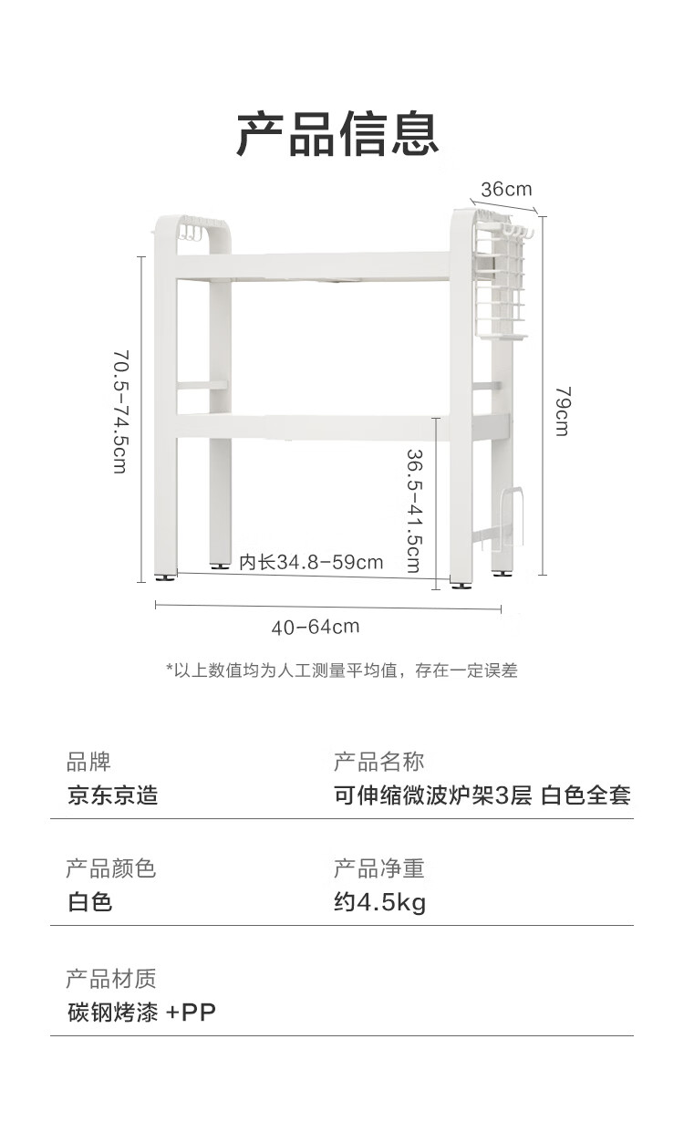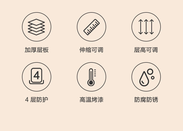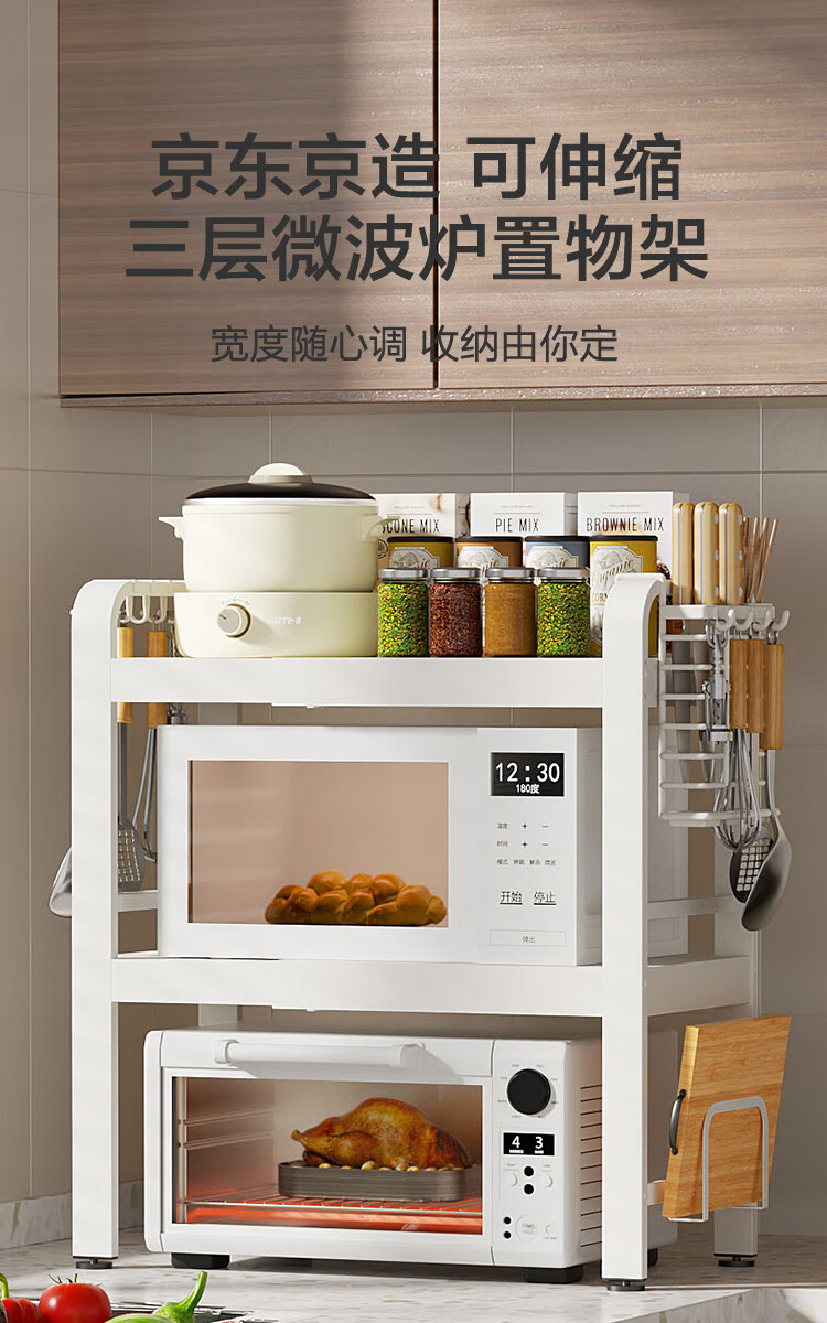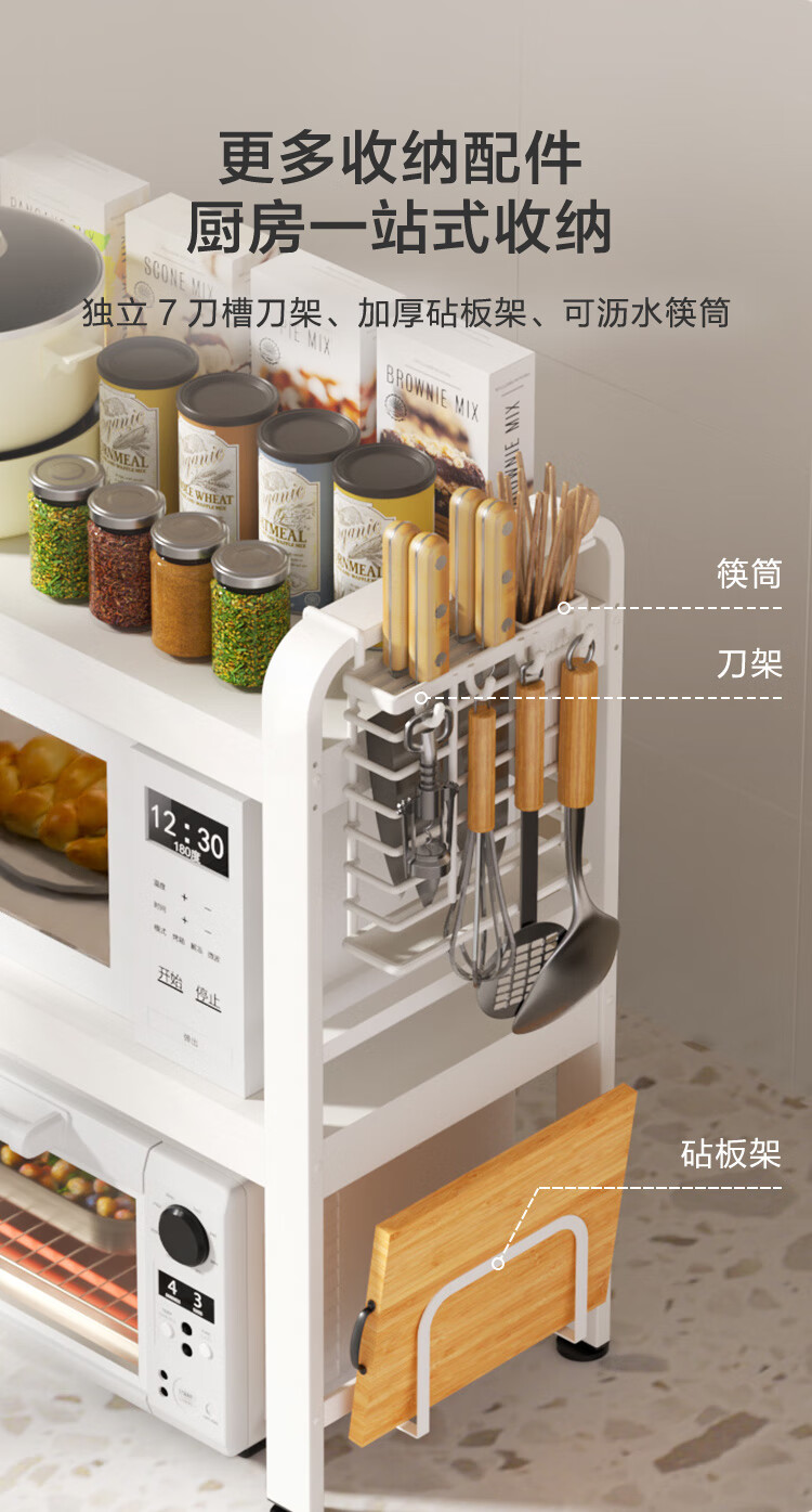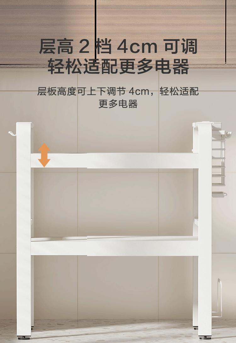 厨房十站式收纳放得下半个厨房;38mm 加厚层板收纳稳稳当当;宽度伸缩可调适配各种空间