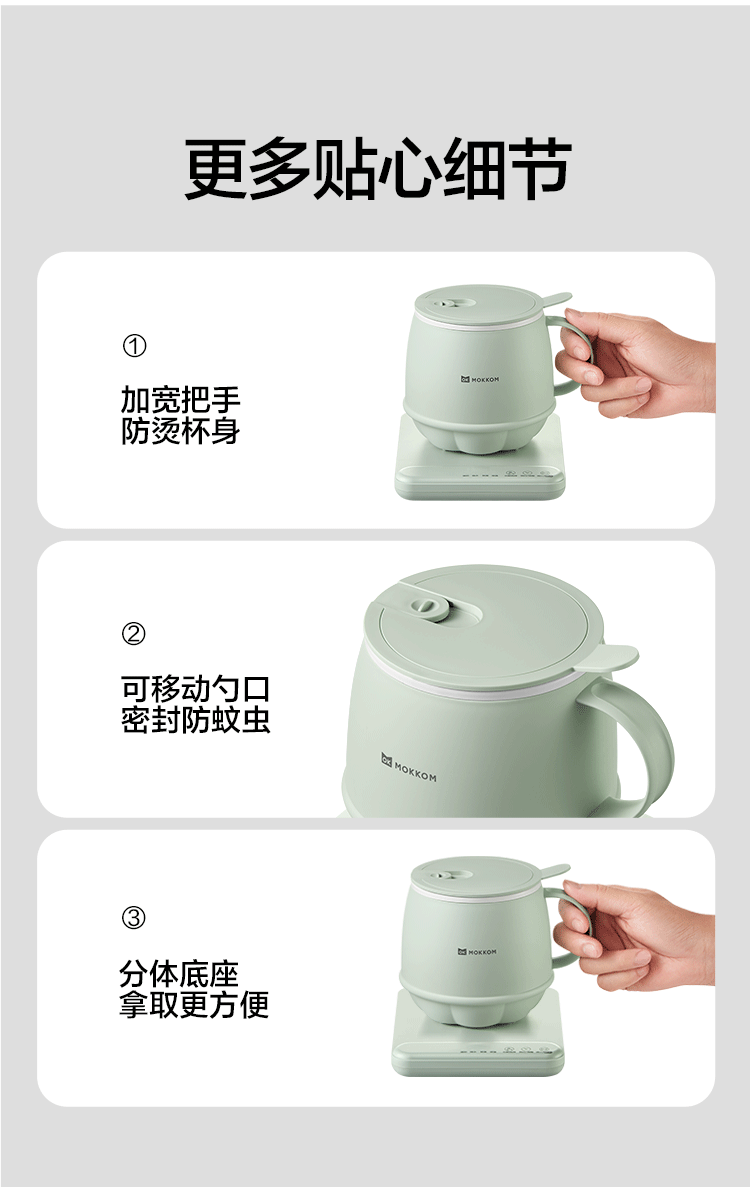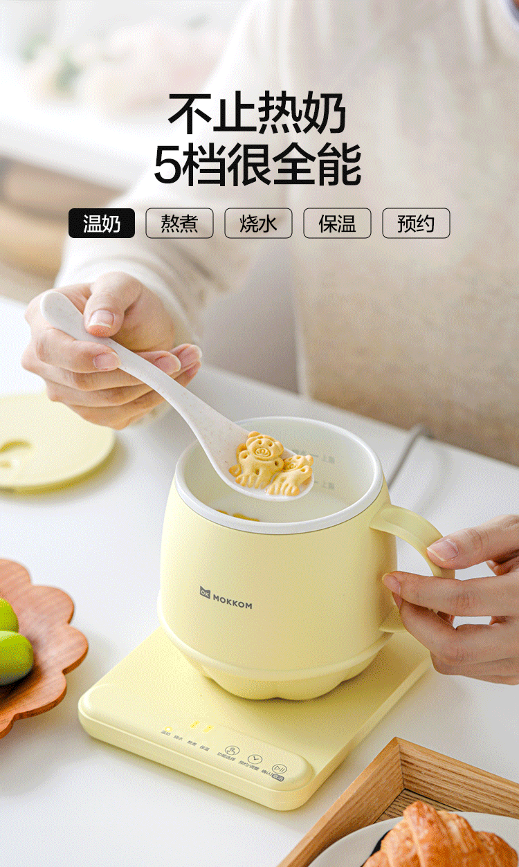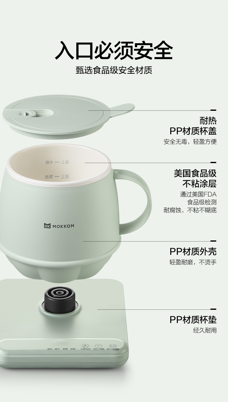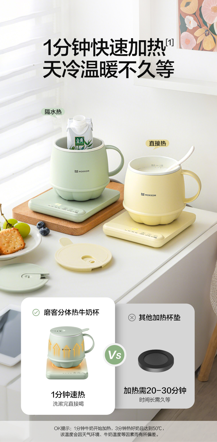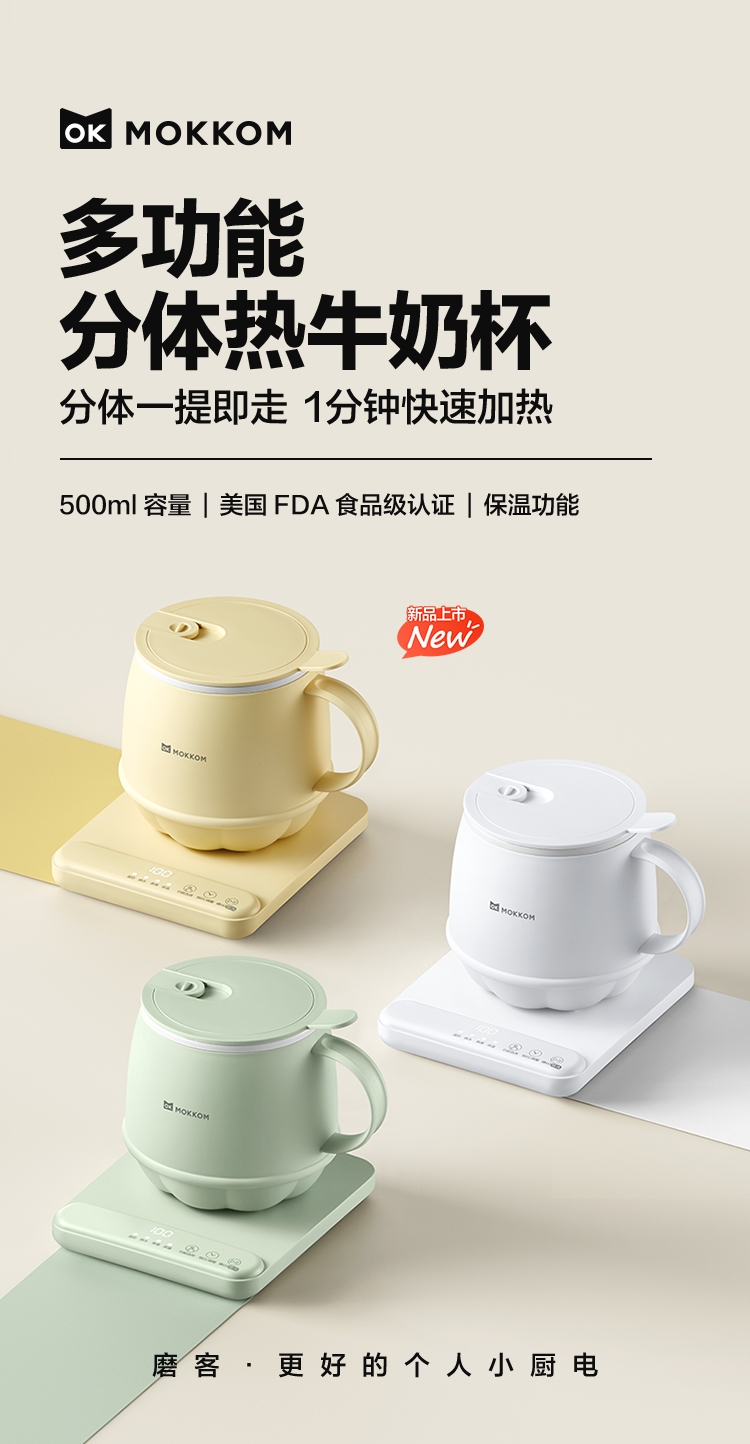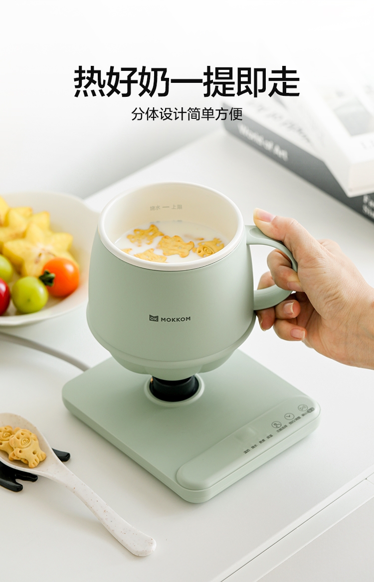 分体式设计简单方便,热好奶一提即走,免拔插头;3分钟快速热奶,不怕溢出不用盯,洗漱完直接喝;通过美国FDA食品级检测,不糊底,清洗方便