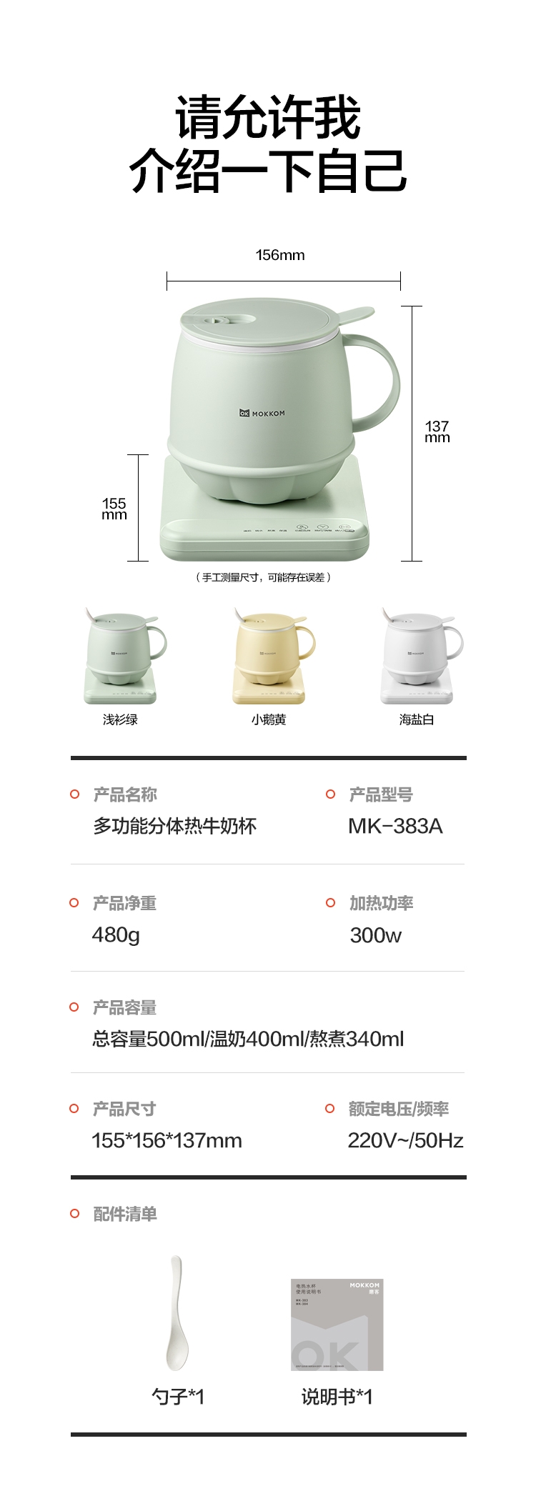 磨客 分体式热牛奶杯办公静音养生杯MK-383A