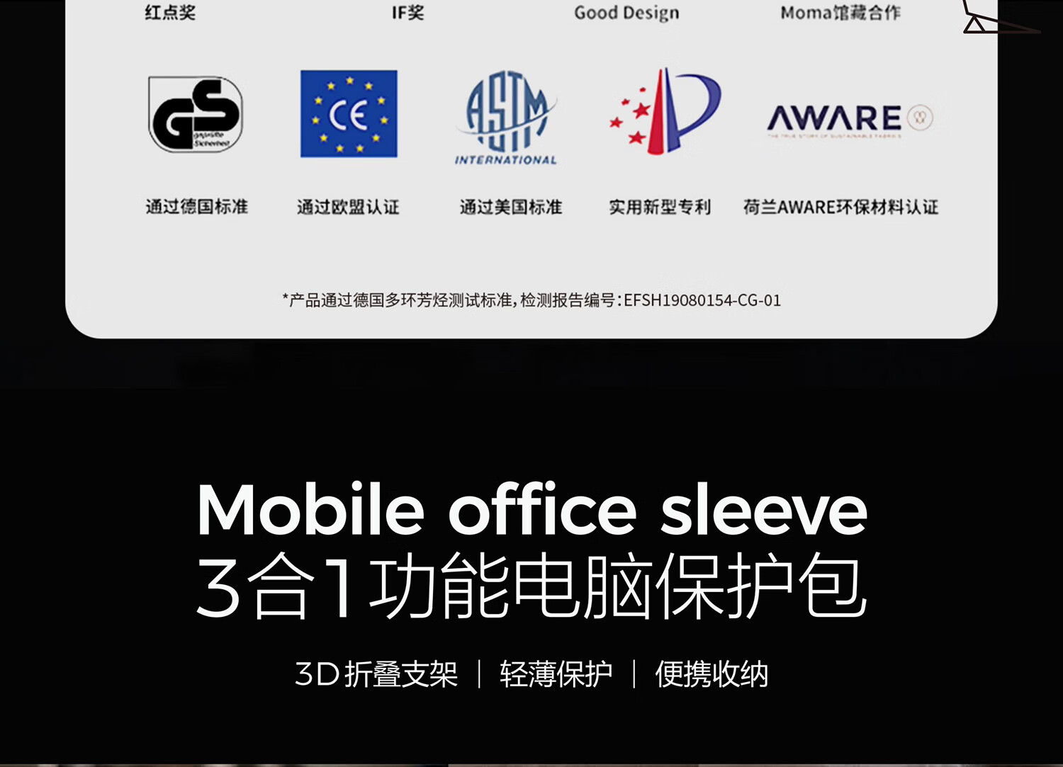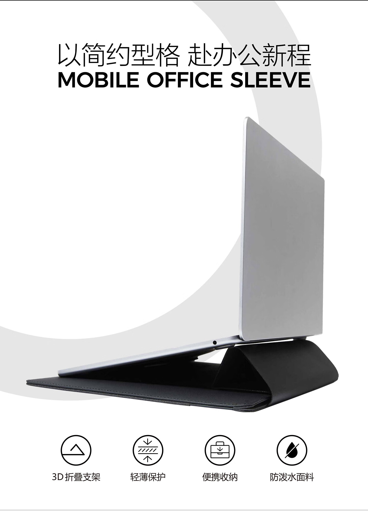 移动办公3D折叠设计电脑支架;电脑内胆保护包,容纳14寸笔记本;防水PU材质