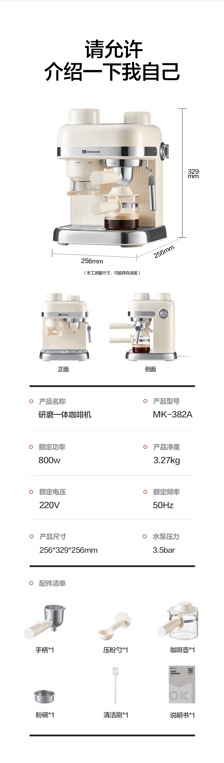 磨客 研磨一体机半自动意式美式咖啡机MK-382A