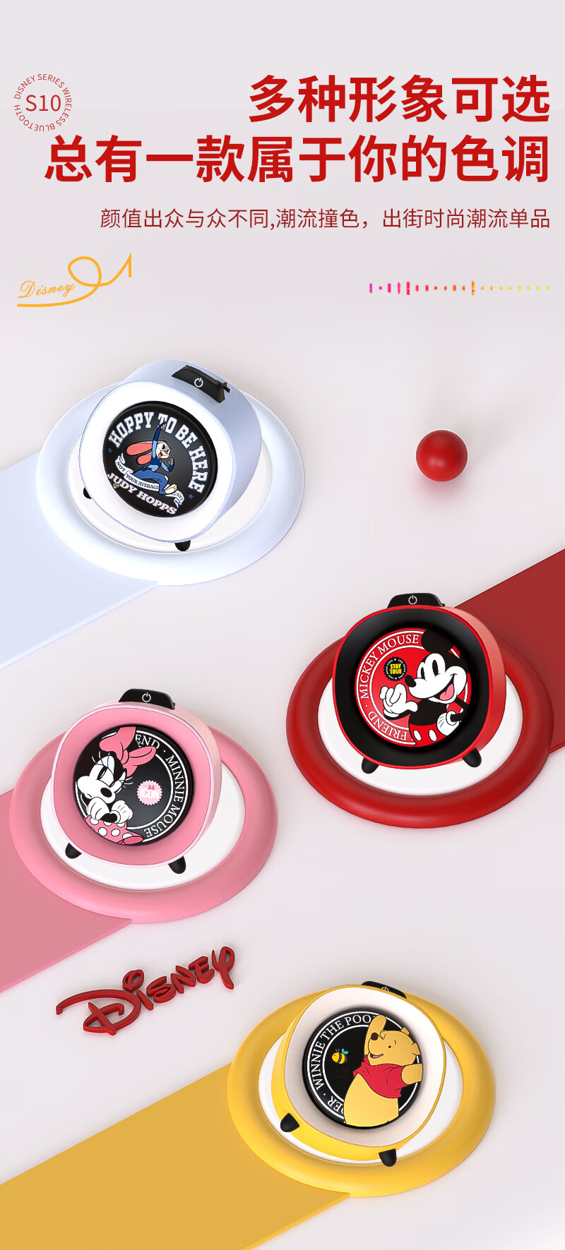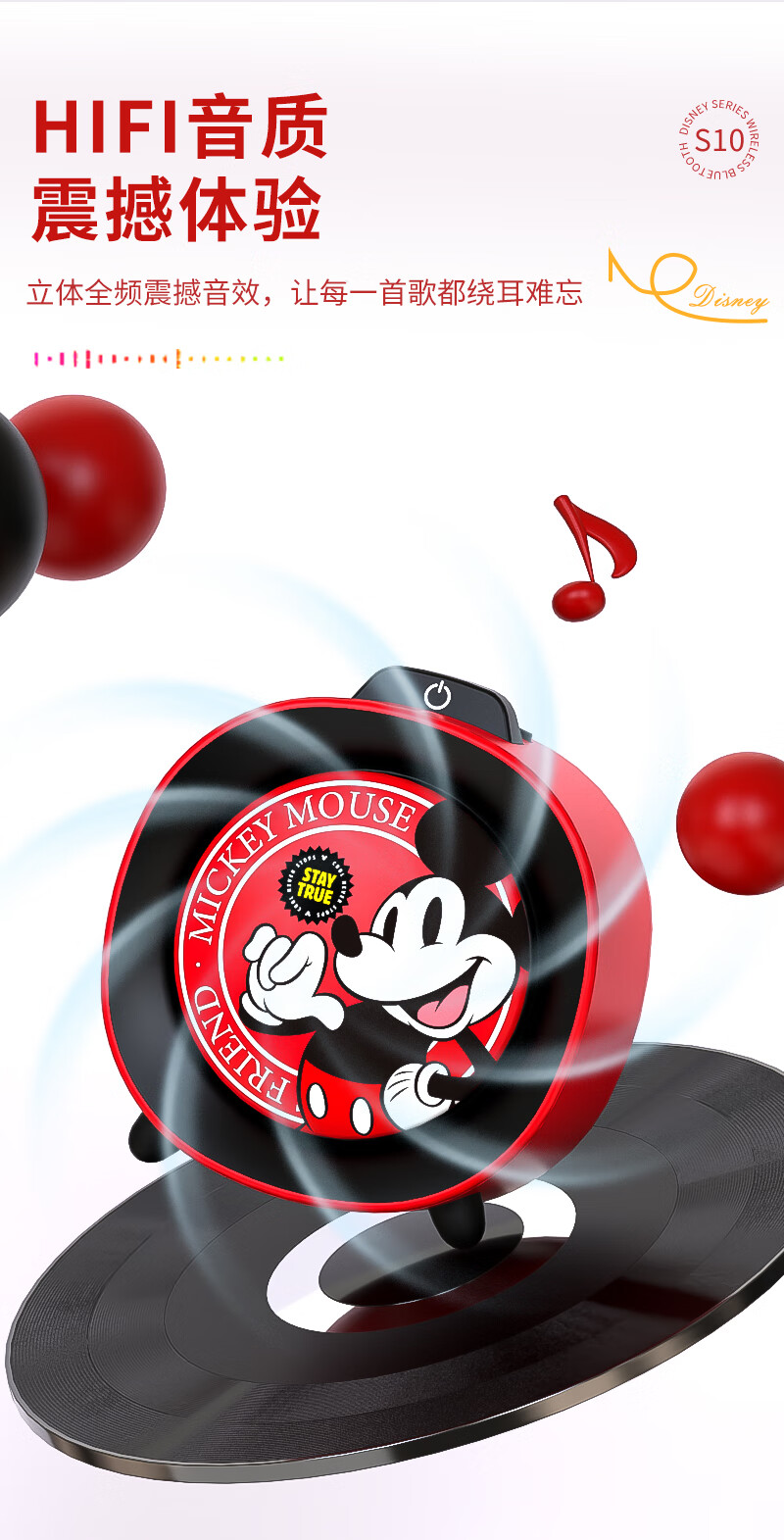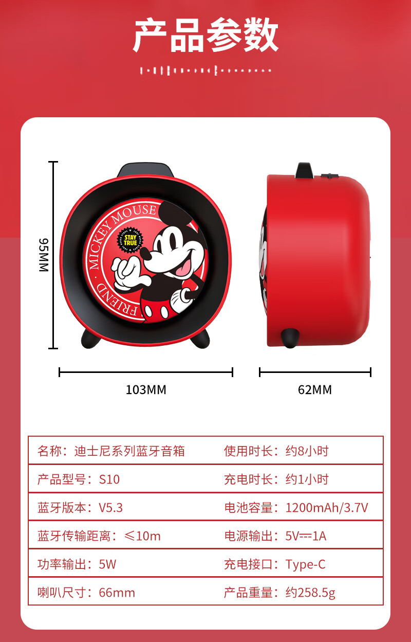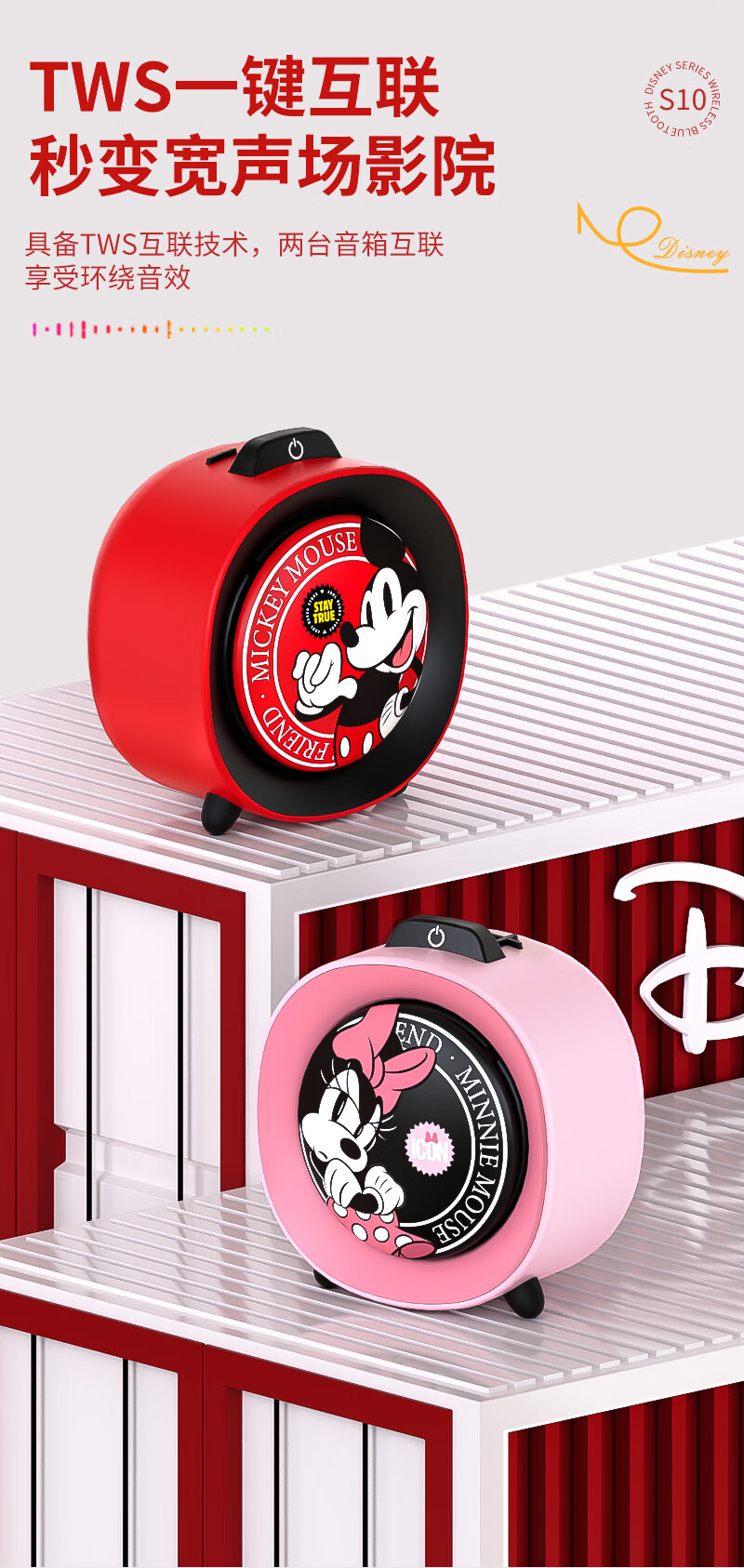 迪士尼正版授权,时尚潮流外观设计,圆润小巧;66mm全频动圈喇叭,劲享hifi音质;支持2个TWS连接,秒变立体声2.0小影院