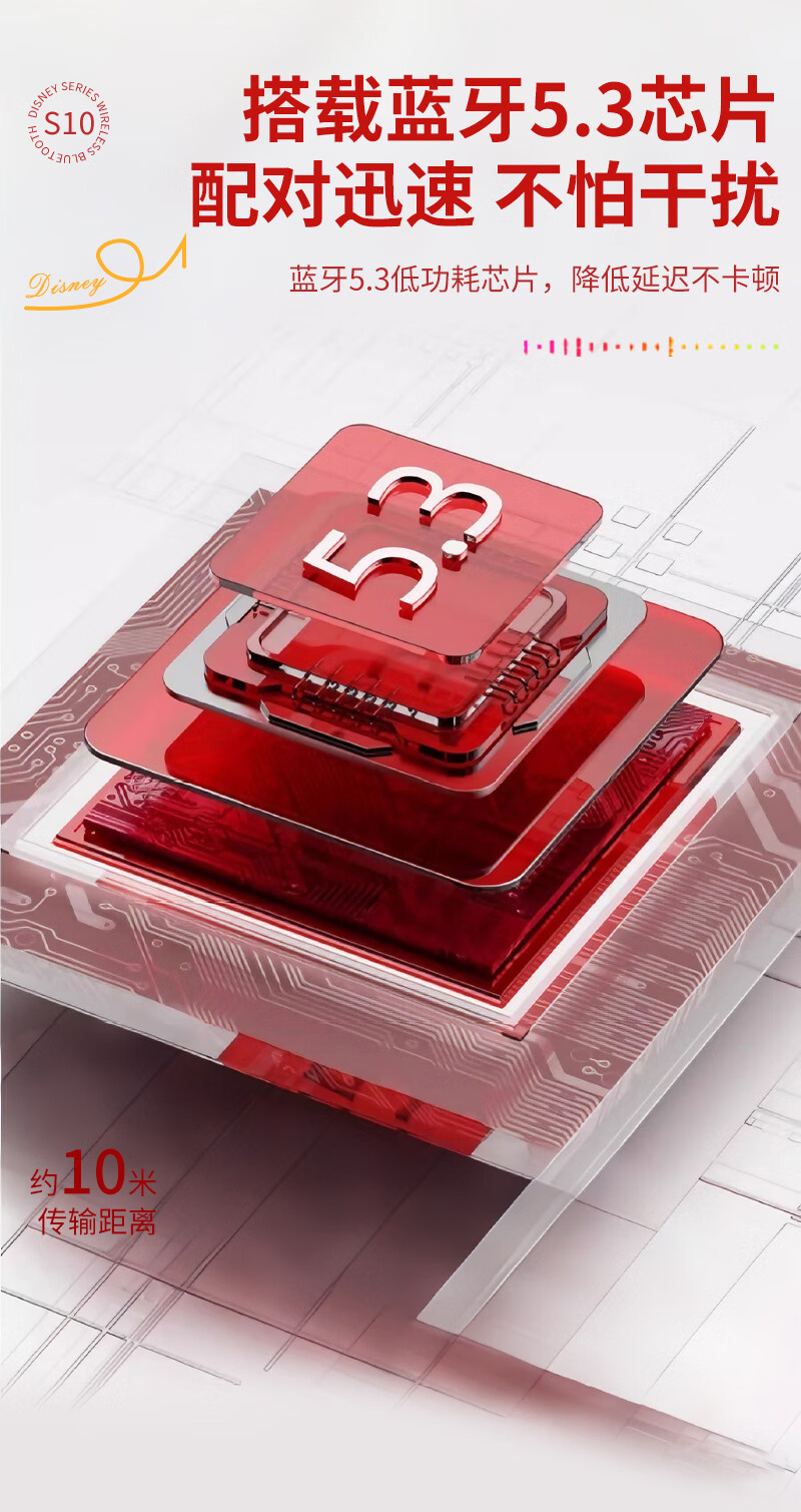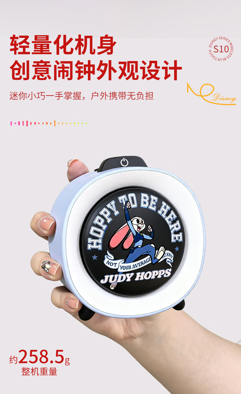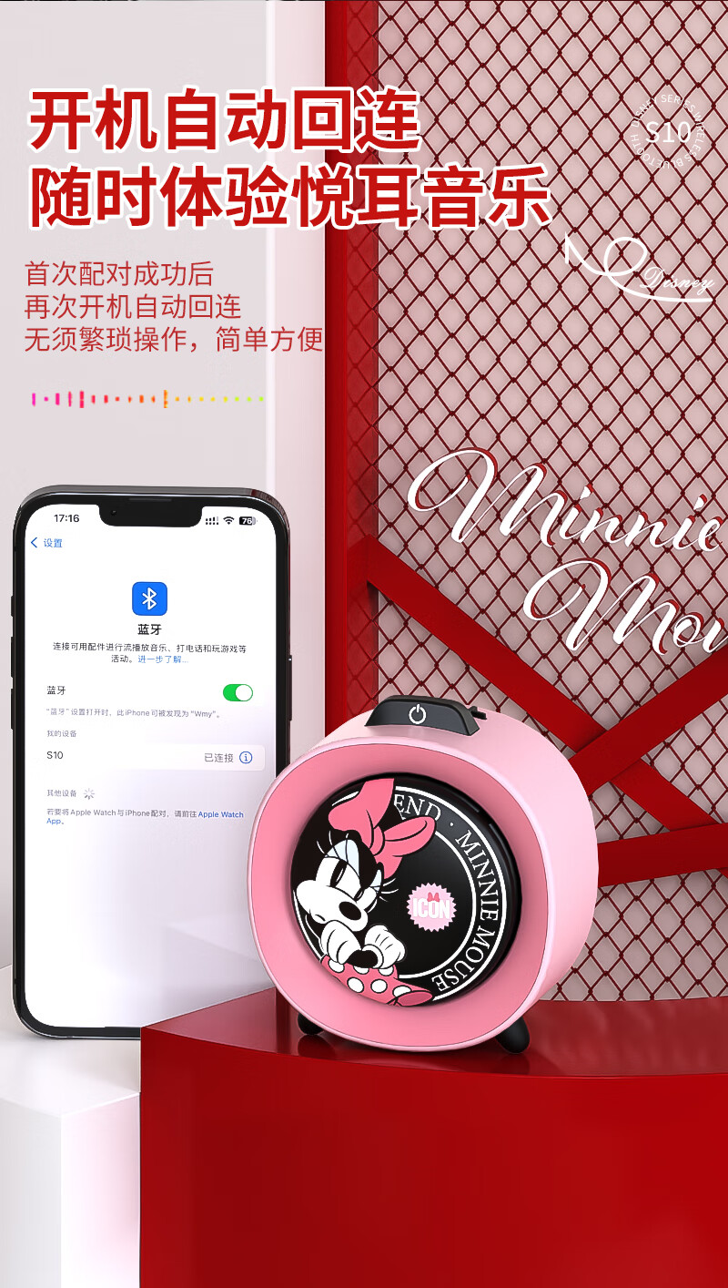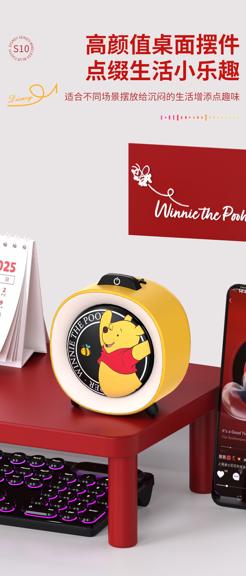 迪士尼正版授权,时尚潮流外观设计,圆润小巧;66mm全频动圈喇叭,劲享hifi音质;支持2个TWS连接,秒变立体声2.0小影院