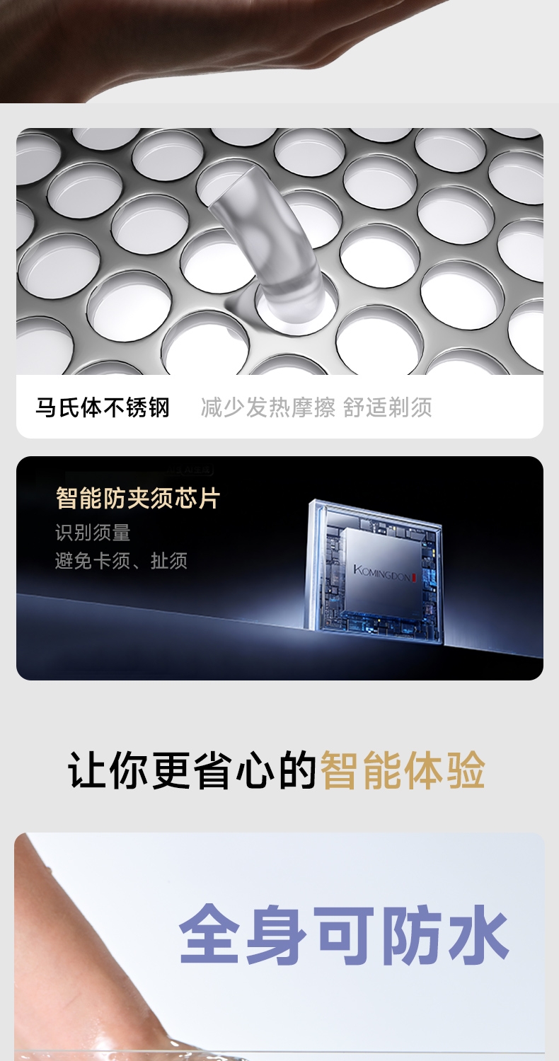 特色功能:变速,可水洗,LED屏幕显示,浮动刀头