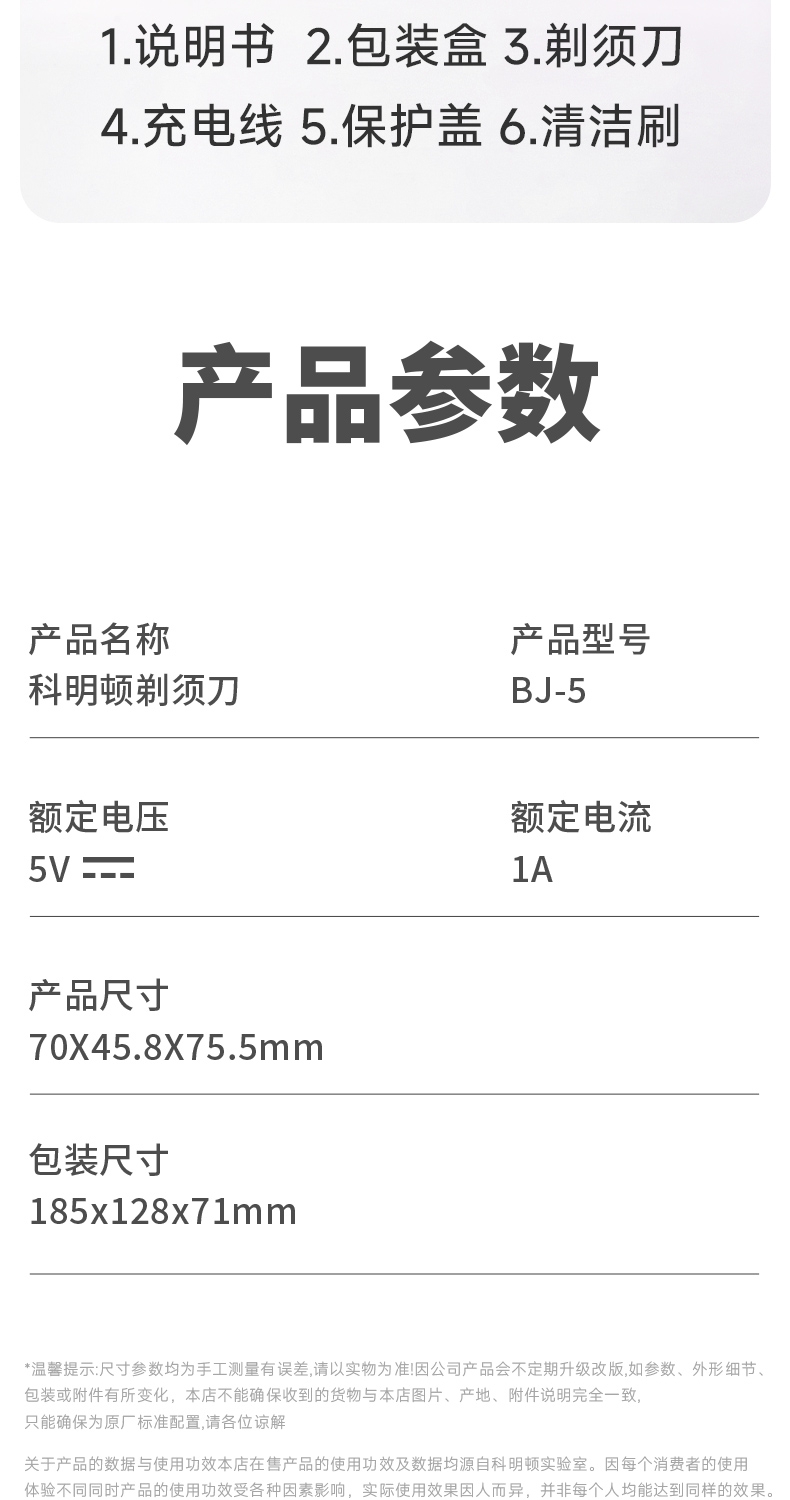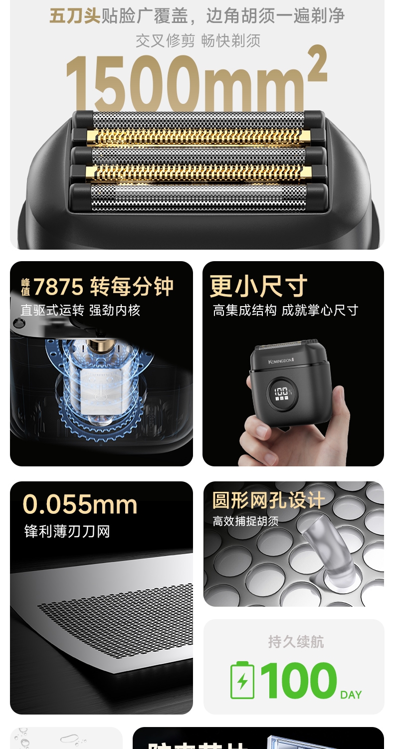 科明顿 往复式五刀头全身水洗数显剃须刀BJ-5