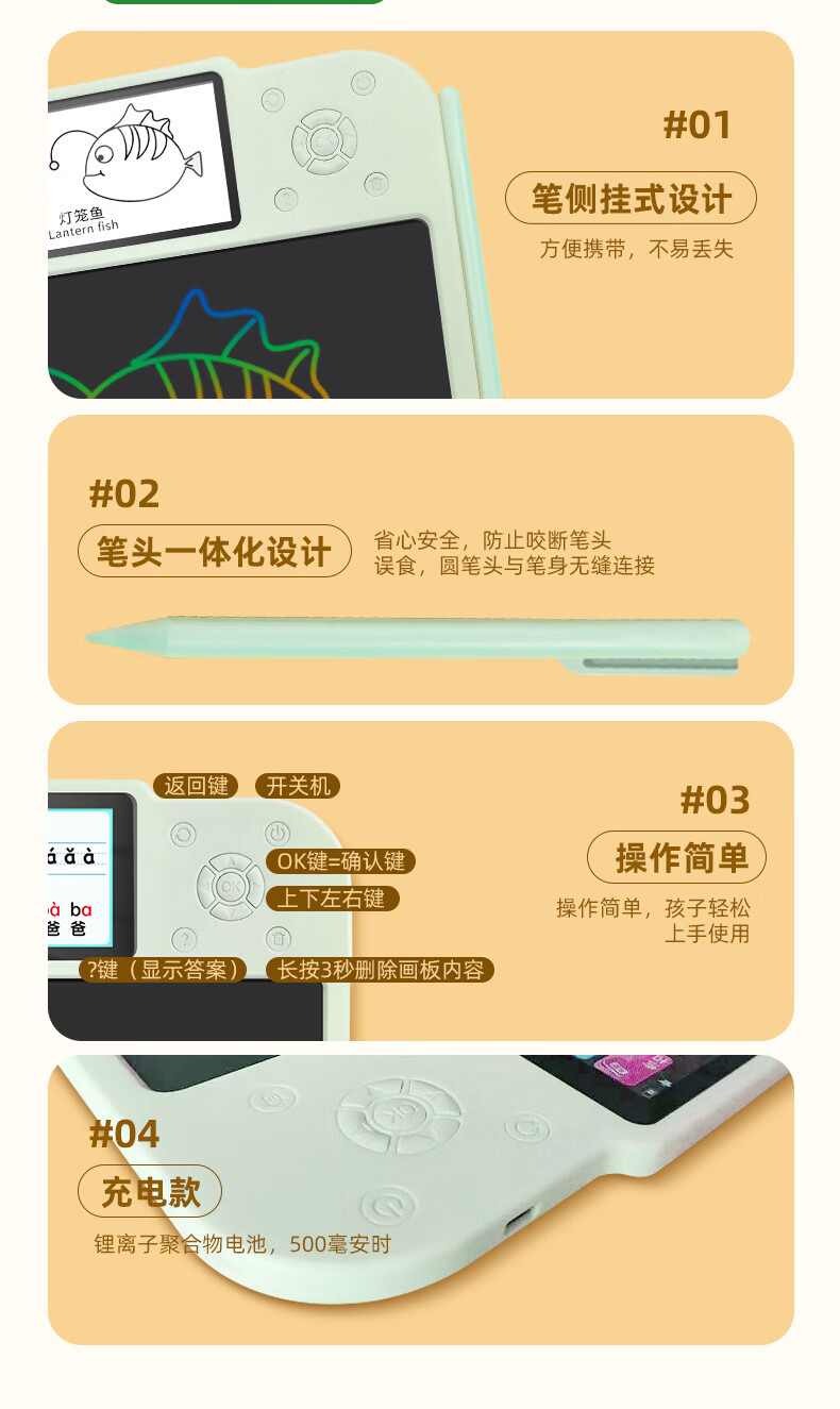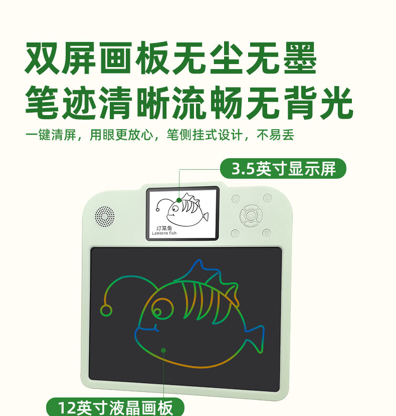 双屏显示操作;12.5英寸画板,3.5英寸显示屏;一键清除,操作便捷,无污染