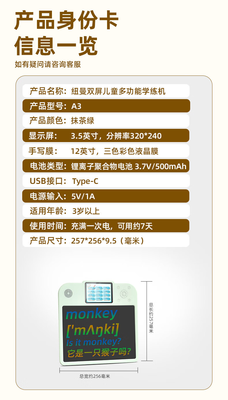 纽曼 双屏儿童多功能学练机拼音练识字A3