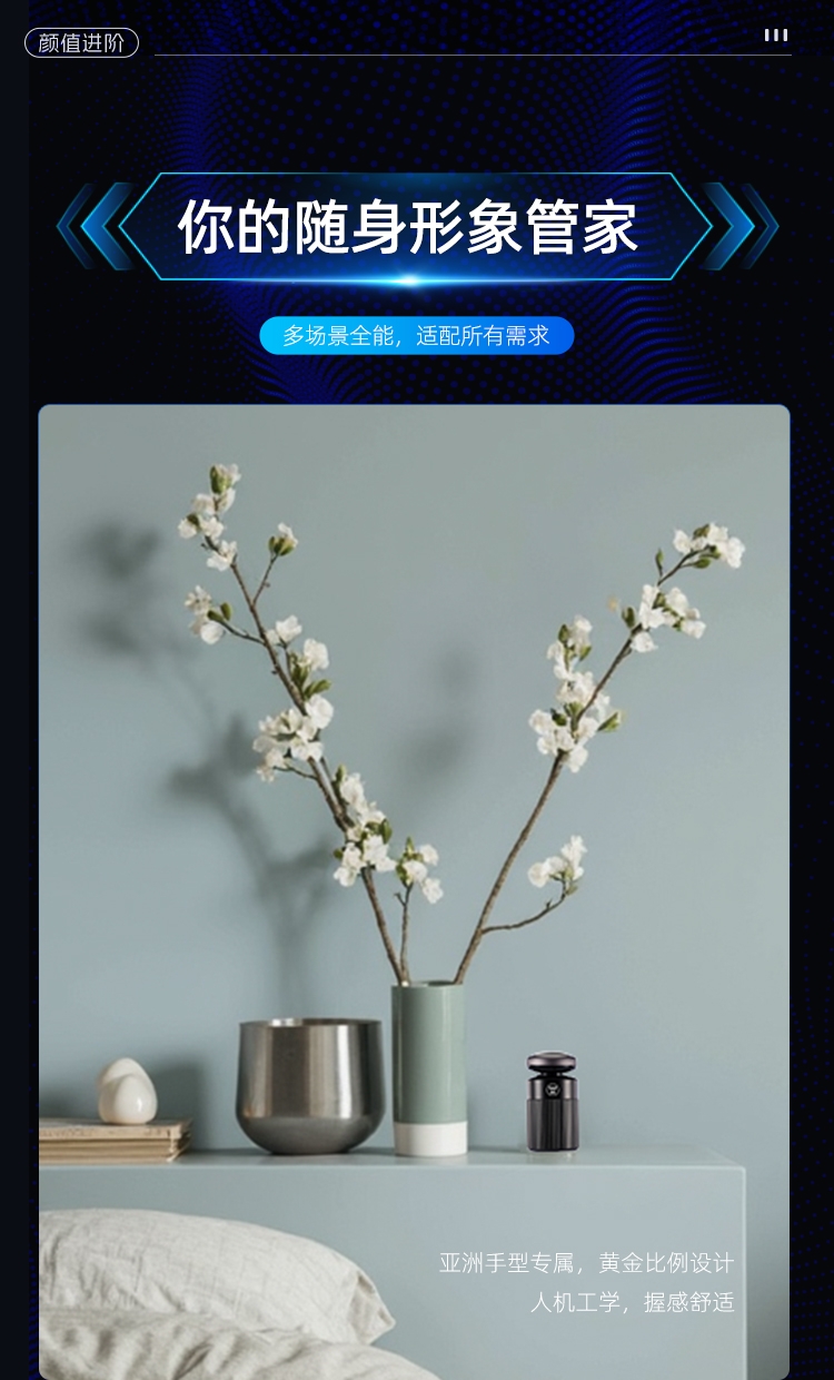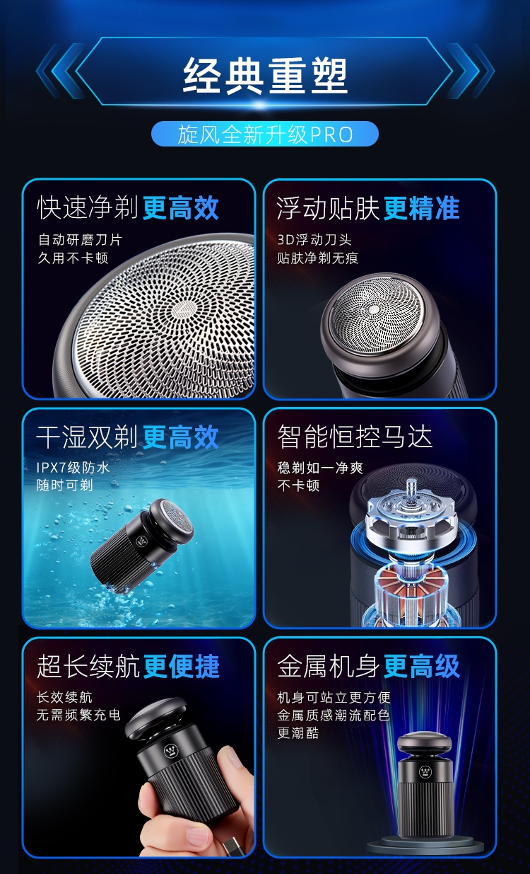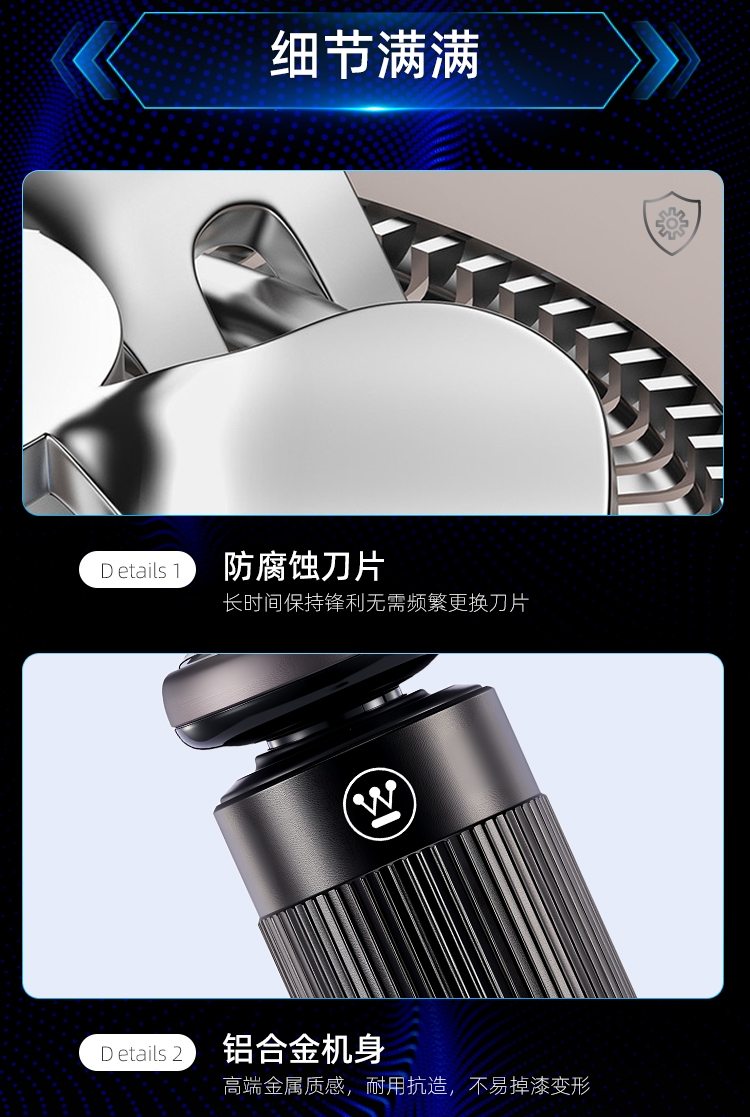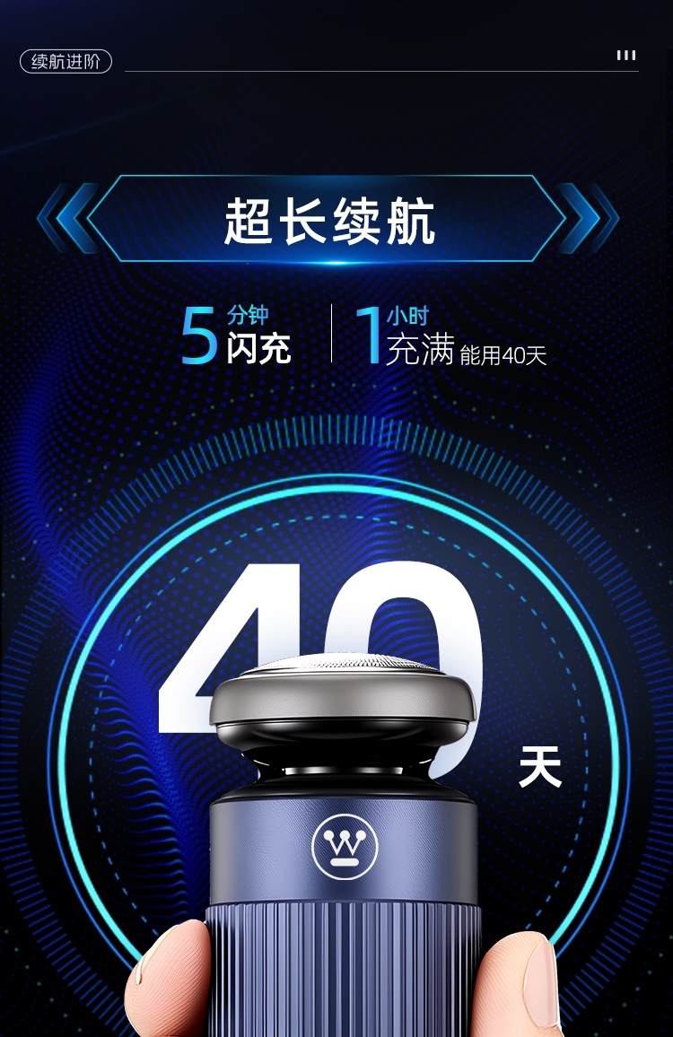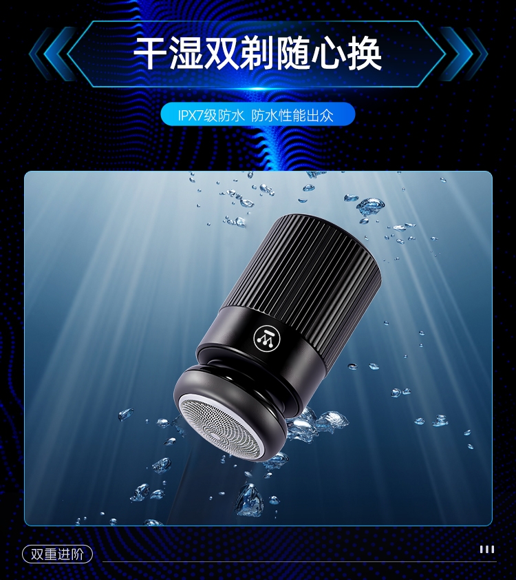 约1H快充,持续使用时间30分钟;;铝合金立式机身,高档质感,收纳便捷;;IPX7 级全身水洗,便捷清洗