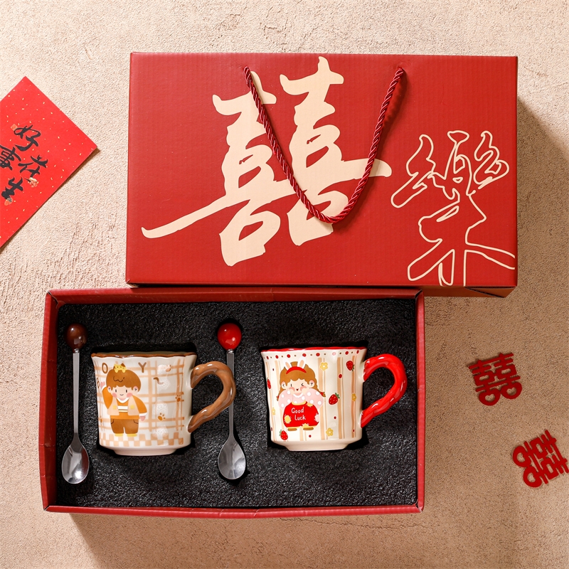 情侣对杯欢乐氛围;2款可自选,区别在有没有杯脚;2款都是礼盒,一箱16套对杯