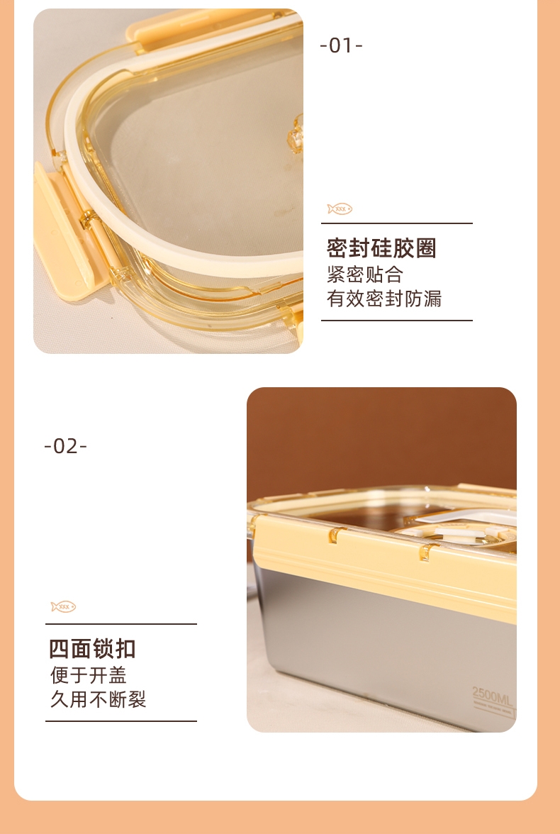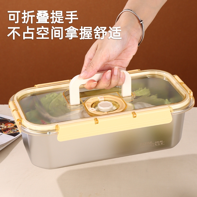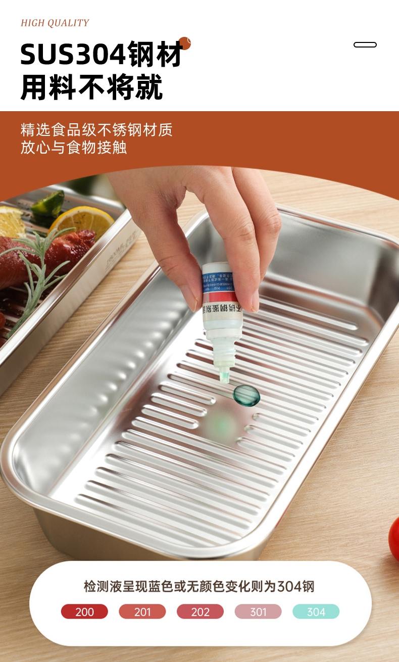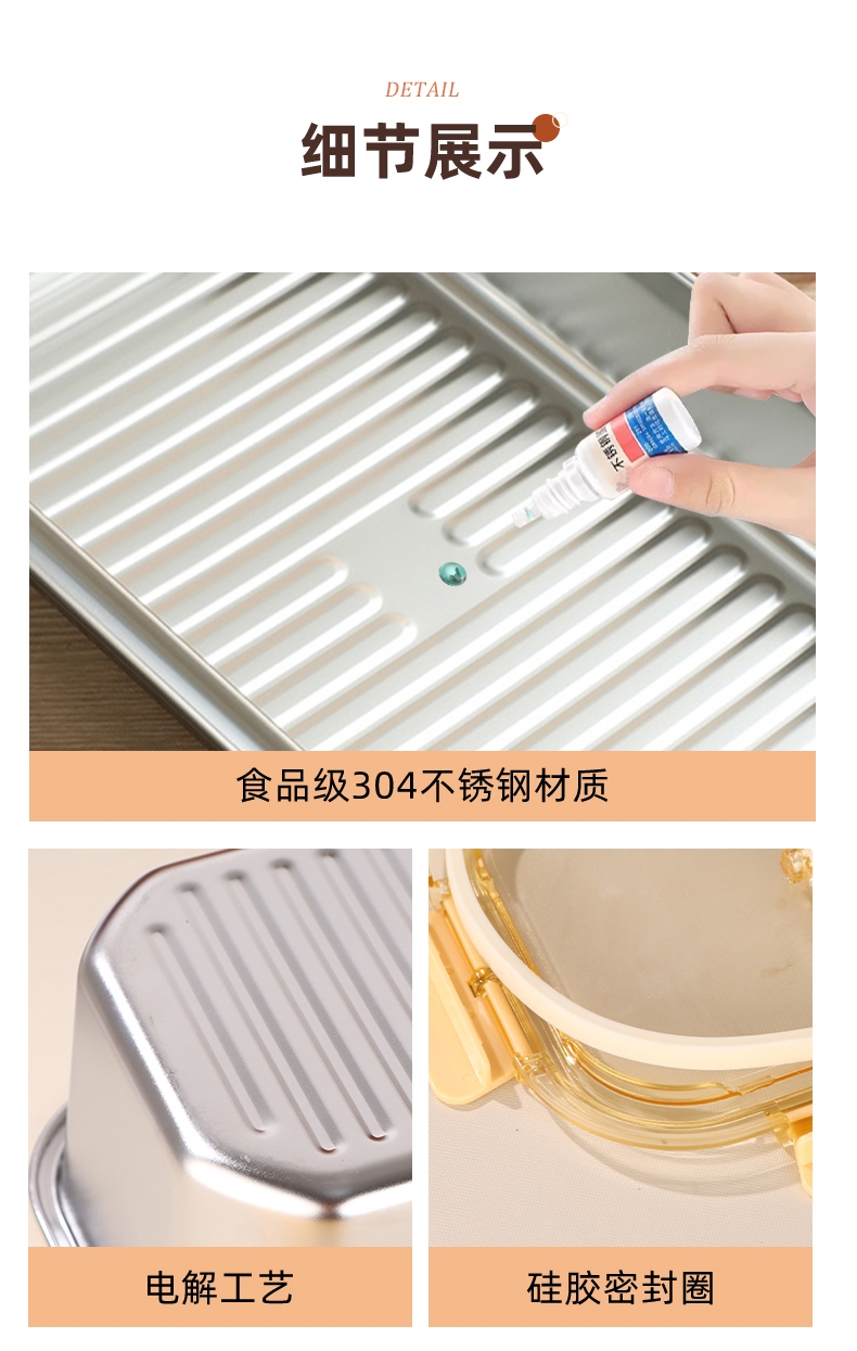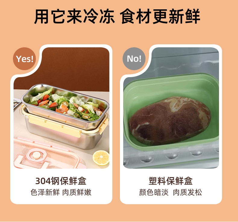 采用食品级SUS304钢+PC食品级材;食品级安全,新鲜看得见;可光波烤箱 +保鲜