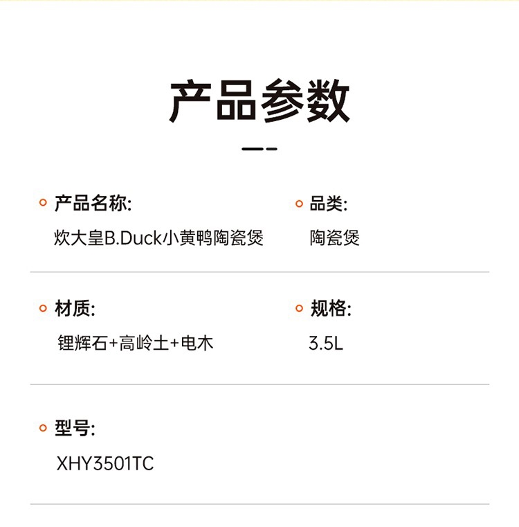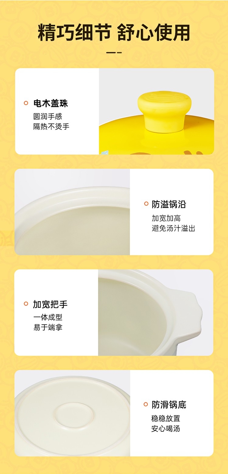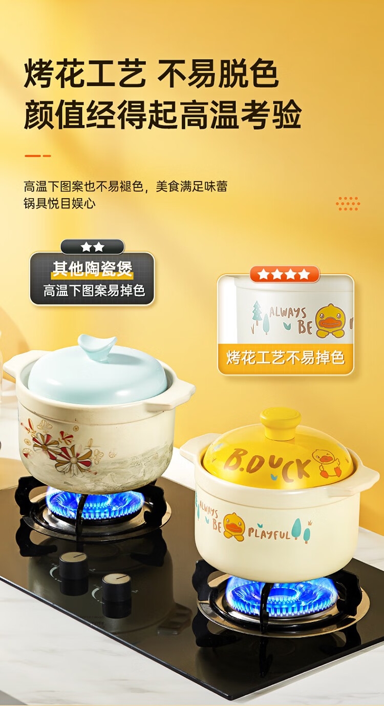 炊大皇 小黄鸭联名砂锅炖锅养生陶瓷煲XHY3501TC